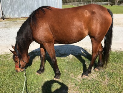 Trainer complemented Gem on her brain here. She said one time she thought Gem was going to add an extra stride in to make the jump , but instead she just lengthened her stride to make it happen. Really smart horse. If she didn’t hate jumping so much, she might actually be really, really good at it.