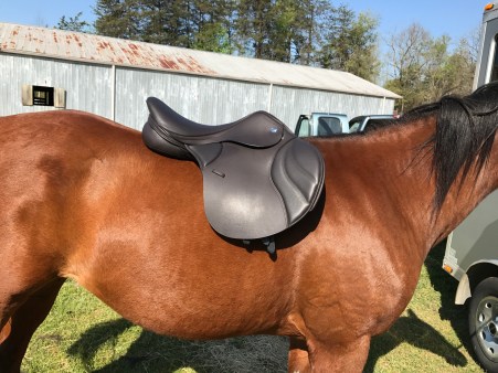 I was a little concerned with the fit on Gem. It seemed too narrow at the gullet, but it didn’t rock and the balance was spot on. The panels fit her like they were custom made which was not surprising as the dressage T8 I have does the same. The flocking was a bit much in the rear, but it is brand new and it should settle with use. I’m going to give it a few months of rides and then have a saddle fitter come in and adjust as needed.