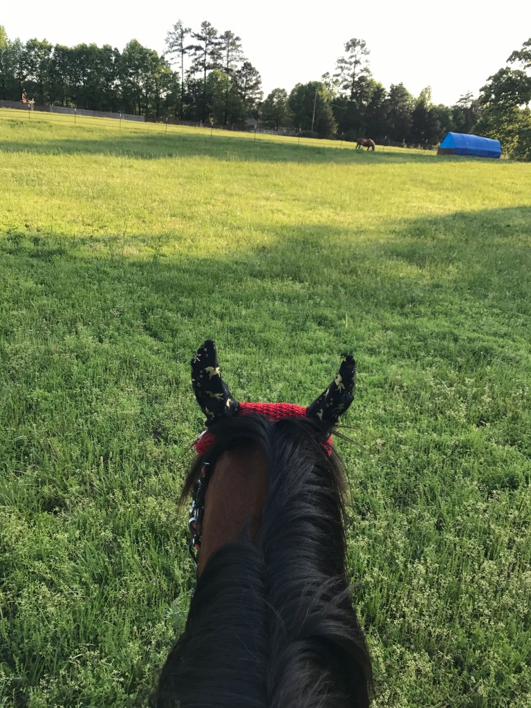 I also can’t ride at home right now. The hay field is mush and not only would it destroy the hay, but it wouldn’t be particularly safe footing either.