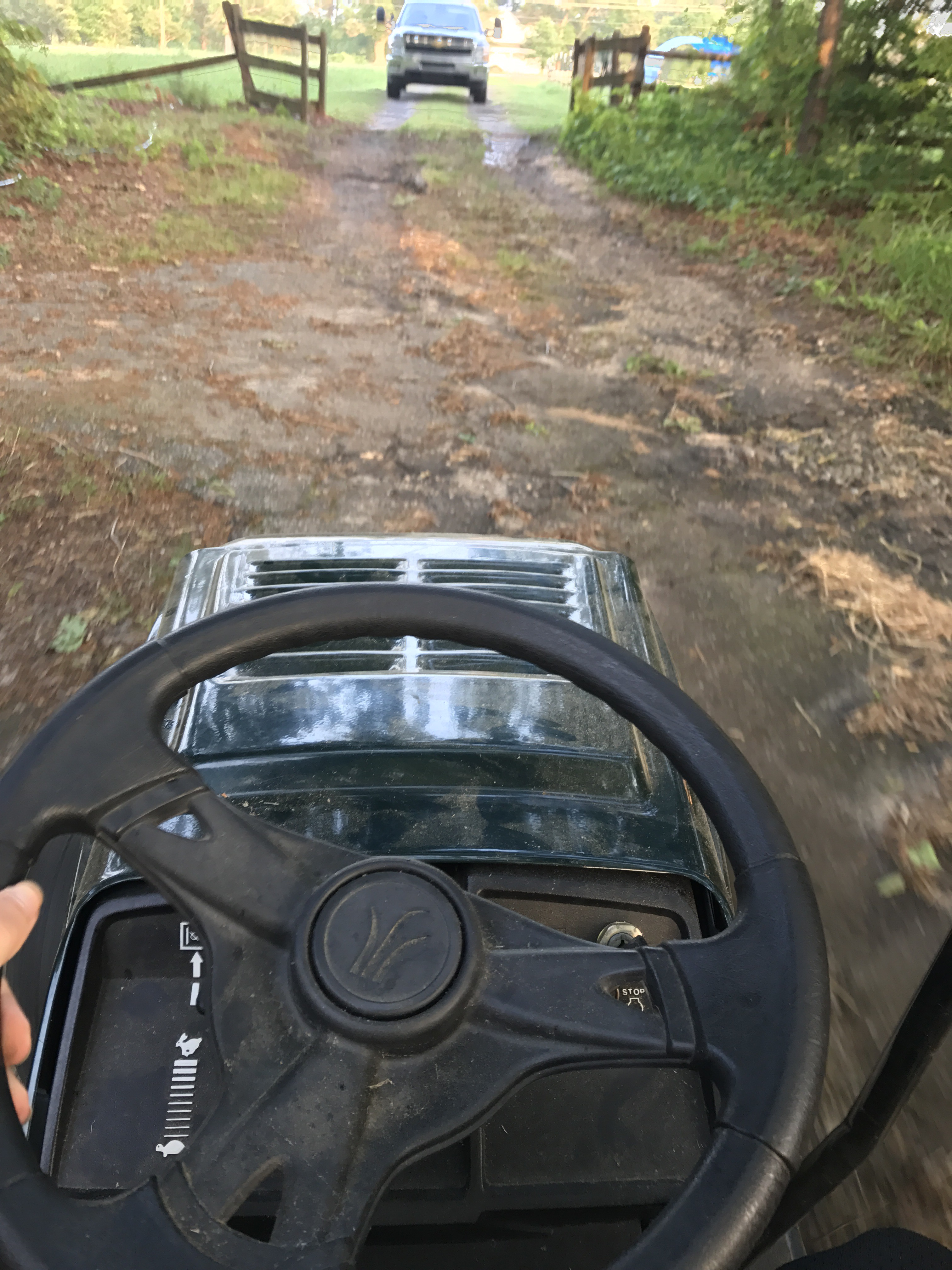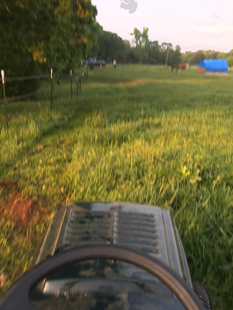 I headed into the pasture and began to mow as the sun threatened to set. About 15 minutes and a few stripes later I came to a screeching halt.