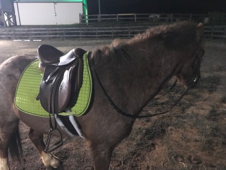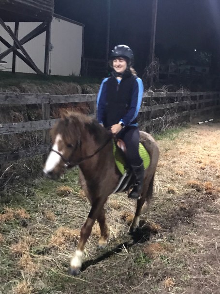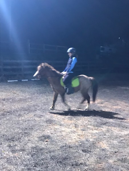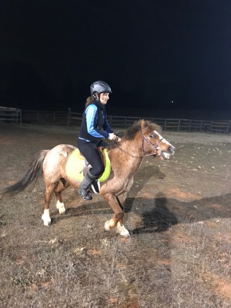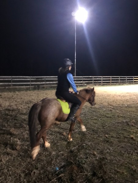 By the time he was done riding it was pitch black and I lost motivation to tack Gem up by that point. Instead I just hopped on Nash. In Wyatt’s 14″ saddle. It was a tight squeeze.