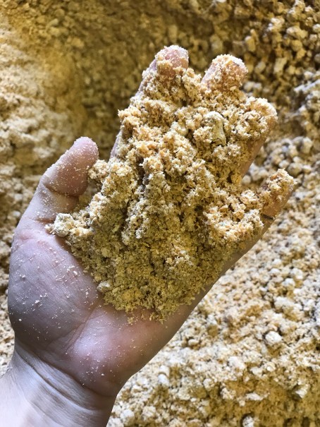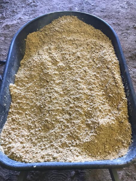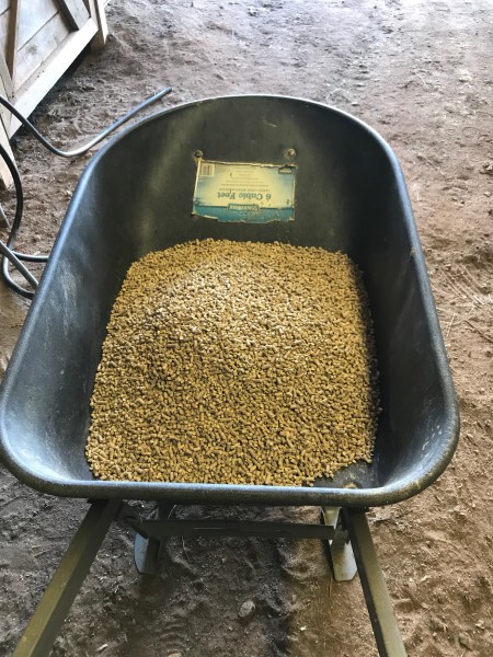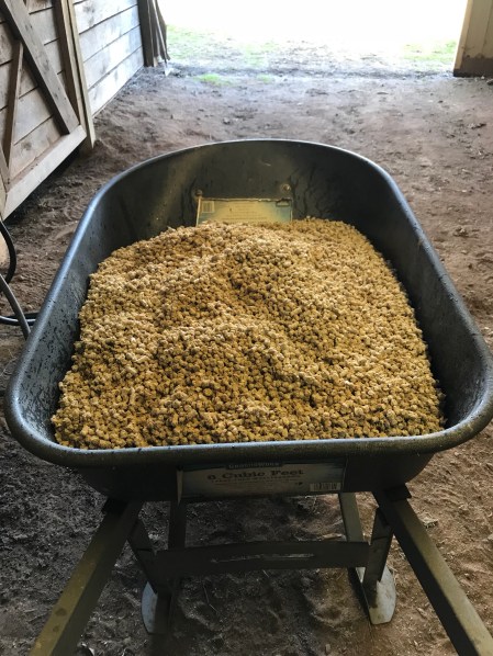 I use the wheel barrow after I’m done cleaning the stalls to dump the new bag and soak. It looks a lot like grain fresh from the bag.