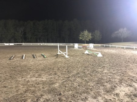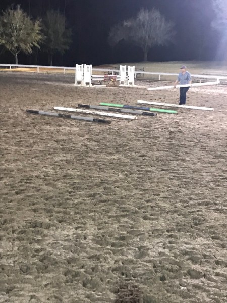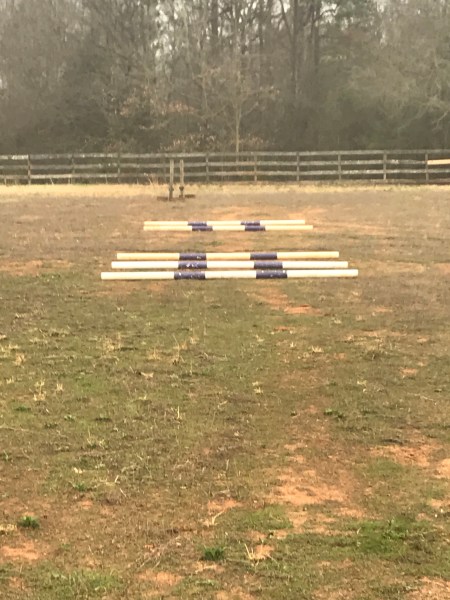 It seemed so simple. Three trot poles, a 25′ gap, three more trot poles (only I used three and two because I only have five poles).