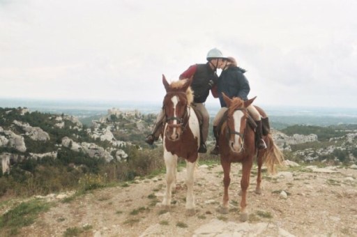 Taken on our honeymoon in France. Hubby had only taken a few lessons prior to this trip and then rode for five days all over the French countryside from mountains to coast. Now that’s love.