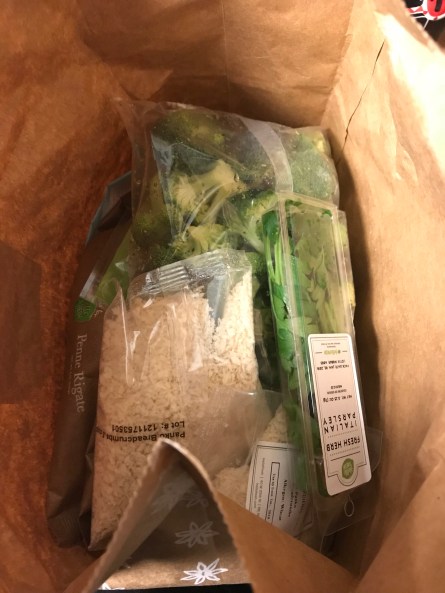 Food is my down fall. Coming up with what to buy makes me want to poke my eyes out with a blunt object. Actually shopping for it is my own personal form of Dante’s Inferno. Did you know that you move the same object seven times before you eat it?? Shelf to cart –> cart to register –> buggy to car –> car to inside the house –>counter to place it is kept –> back onto the counter to use it –> then onto your plate. Ridiculous!