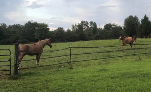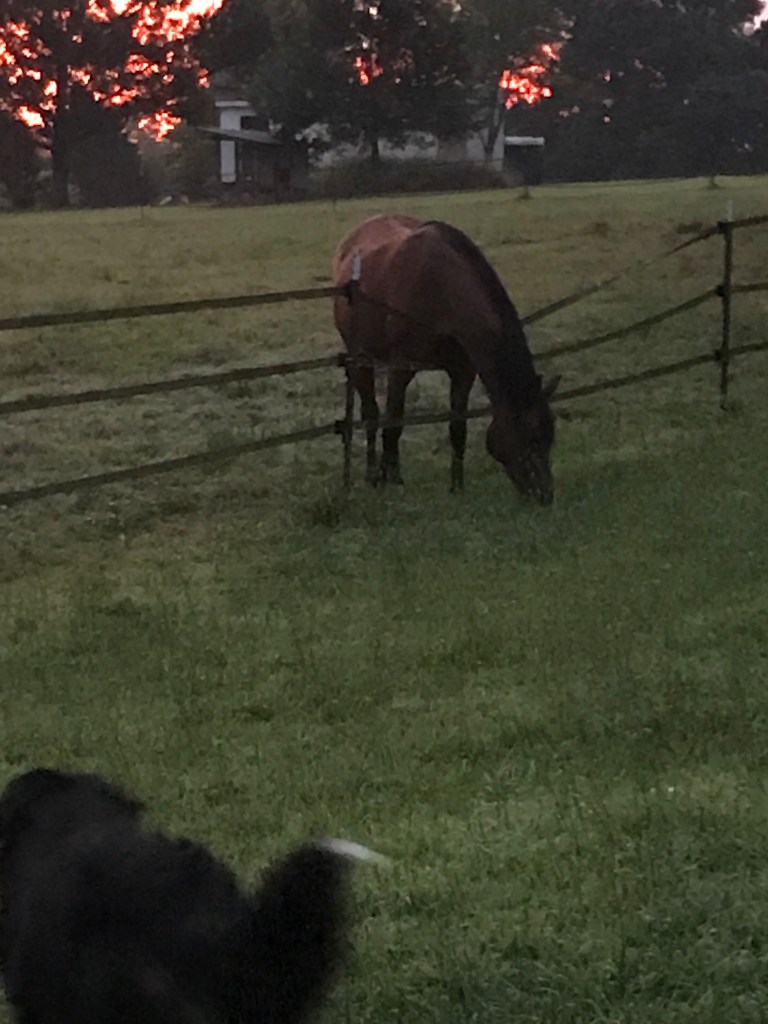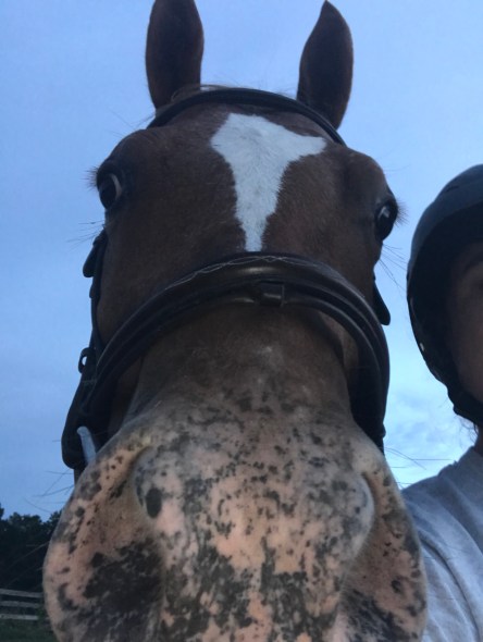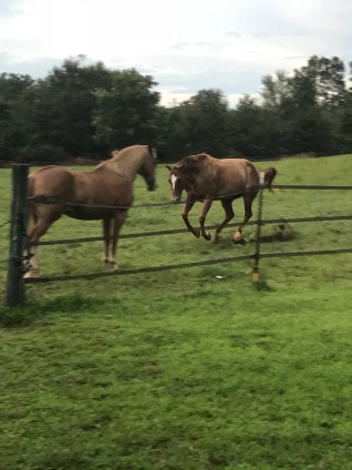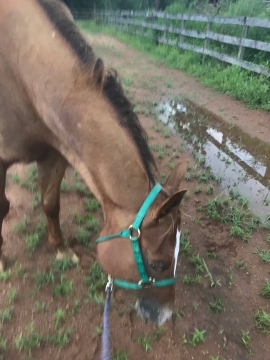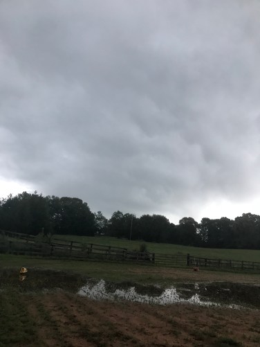 Last night’s ride was cut short by a nasty storm rolling. Again. Thankfully I dismounted and had put two of the horses back out before a rogue lightning bolt struck a tree in the woods behind the pond. It has been nasty out folks.