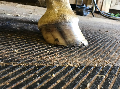 A lower heel and much longer toe. I’d like to see the new hoof grow in more upright.