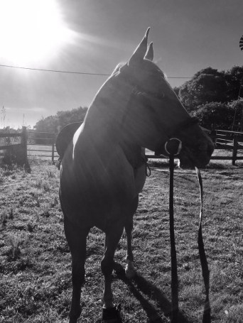 He was sweaty and quiet and stood like and angel to be stripped of his tack. Until I went to take his boot off and he whipped his mouth around to bite my butt. He was pretty shocked when this didn’t reward him with a light tap and a “no bite” from me as it did the other 100 times he has done that and instead his face smacked into the heel of my boot as I brought my foot up when he whipped his head around. Guess who didn’t try that again?