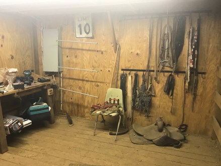 After that it was time to tackle the tack room move. The office is nice because it has a ceiling and door plus is right next to the cross ties at the entrance to the barn. I started clearing out all the garbage tack left behind by the old owners.