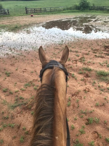 The non stop down pours have wreaked havoc on arena Puddles everywhere and it is either actively raining or not dried out enough to get in there and tear it up so the grass and weeds are back. I’m about ready to cash in my chips and have someone come scrape everything off and put all new footing in. I just need to sell a kidney to afford it.
