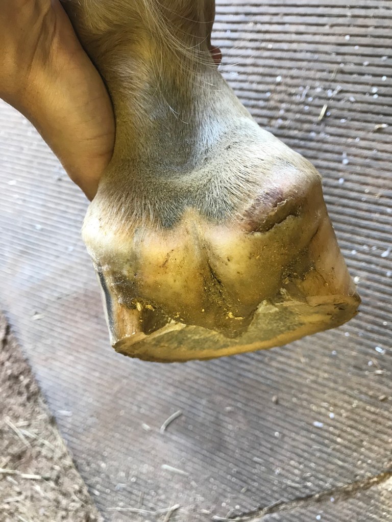 Other than that the verdict on his feet is that they suck. In general. More specifically he has paper thin soles that remain “squishy” (his words) even after two months of pasture, being bare and hoof supplements topically and orally.