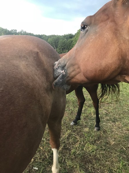 What I haven’t done is ride him or lunge him or even hand walk him. I watch him run amok in the pasture and play rear/bite with Pete on the daily and he looks sound. Extremely sound. Sound enough to come flying down the hillside to the gate for dinner nearly splatting on his face because homeboy has no idea where his feet are and how to manage his legs.