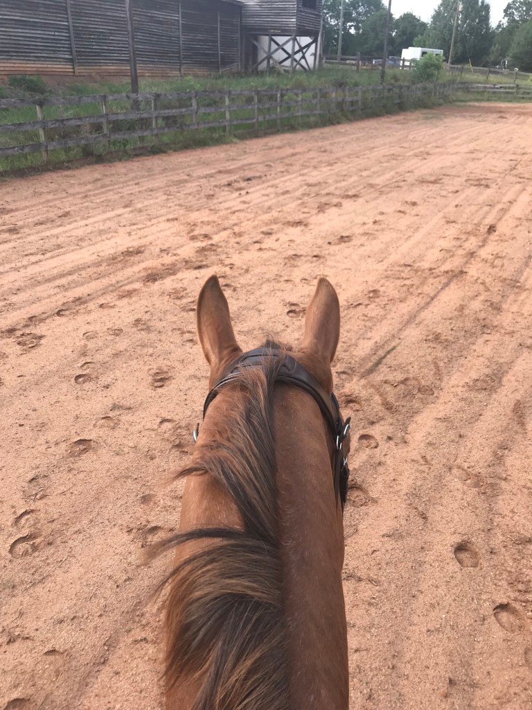 He did give me prompt canter transitions though. They were hollow and head up since the trot was sucked back and behind my leg but he was prompt and didn’t try to run off with me so it was a win for the moment.