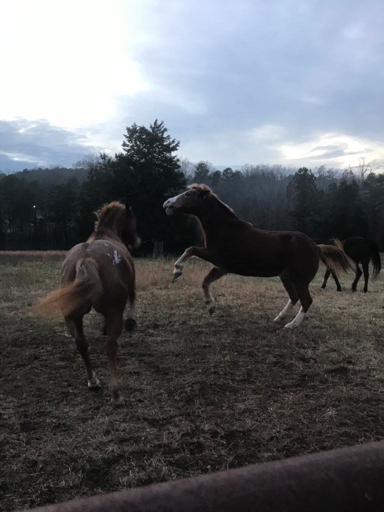 Watching H’Appy and Old Man Winter play is one of the highlights of my days. At 28 Pete still whoops the young H’Appy’s butt on the regular after H’Appy initiates a game of bitey face which Pete escalates to rearing, chest slamming and galloping.