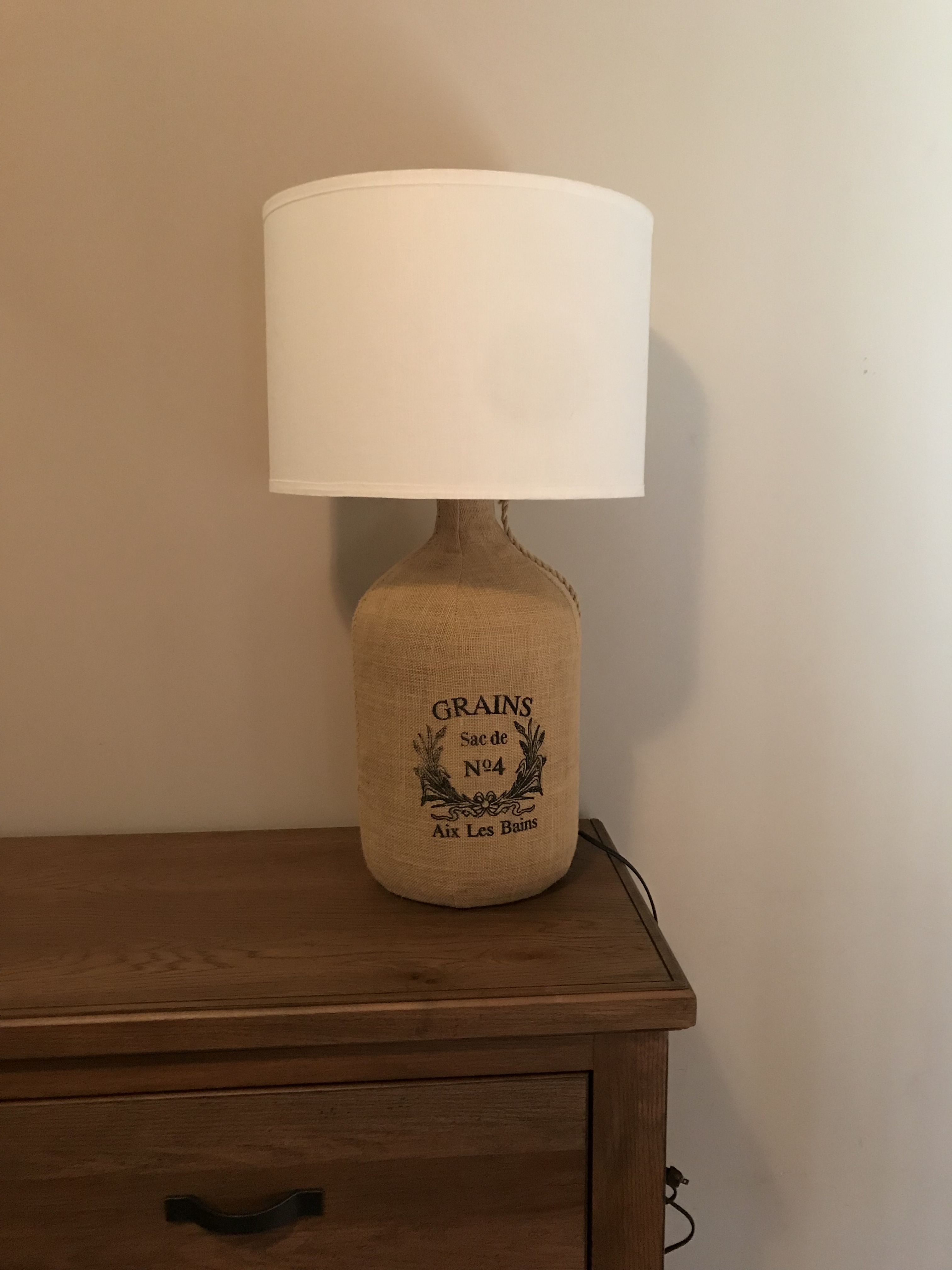 The first item I bid on was a bit of a ridiculously large table lamp. It’s covered in a burlap sack and will look good with the farm house decor in my living room. I was the only one to bid and got it for $20.