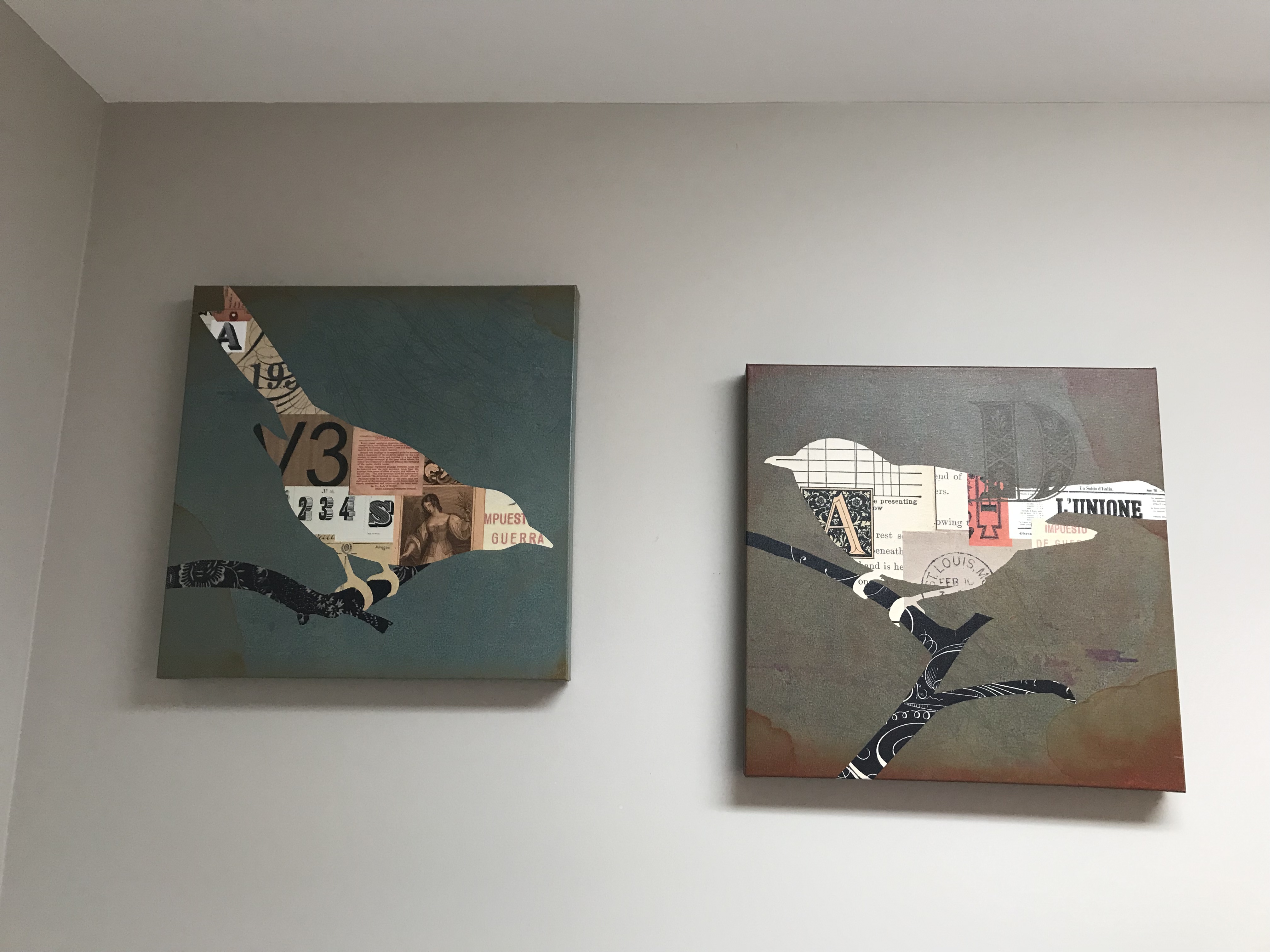 I then lost on a gorgeous horse painting but won the two bird prints for $10. No clue what they would cost, probably around $40-50 at Hobby Lobby or such store.