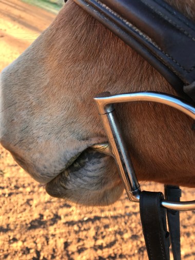 I’ve found that working on the halt is a great warm up for him. The first time he always tries to blow through me and I have to get a bit more harsh in his mouth than I’d like to back up the halt aid. Then when I ask him to walk he shakes his head in annoyance at the pit stop. As I keep working on the halt eventually he blows out and will halt with only my seat and legs.