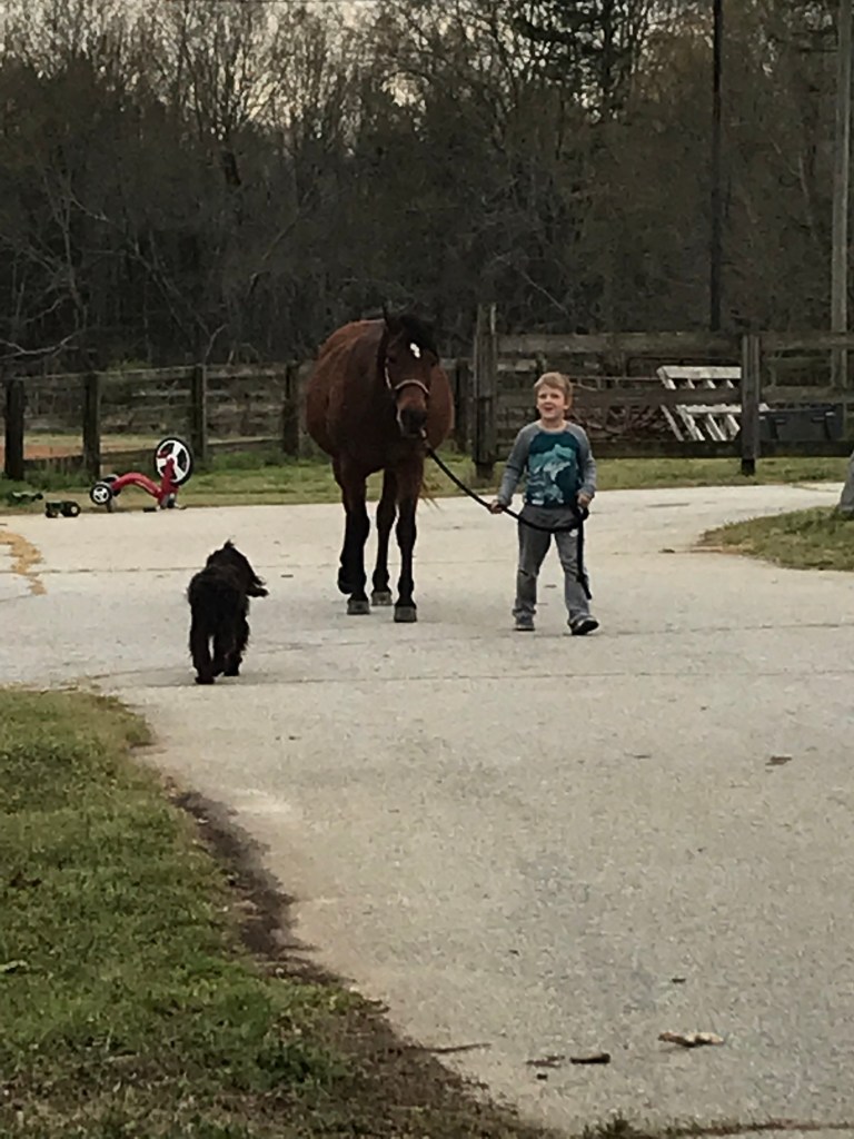 He lunged ok. A bit wild but listened promptly to all my transition requests and didn’t pull on the line one time. I could see him thinking about it but he didn’t and I was so proud of him for that.