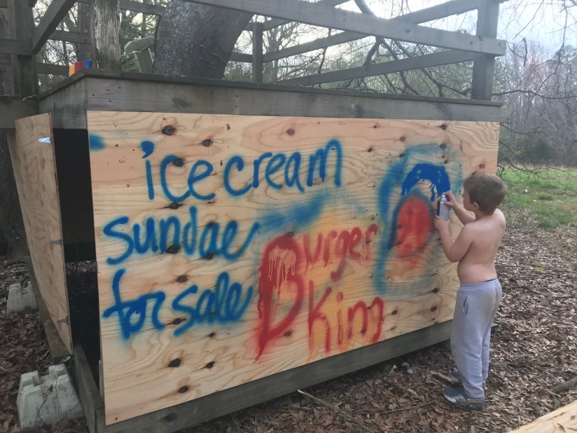 Wyatt continues to work hard on building his own franchise in the back yard. I keep telling him that DHEC won’t approve it, but he doesn’t seem to let that phase him. Burgers to be offered soon!