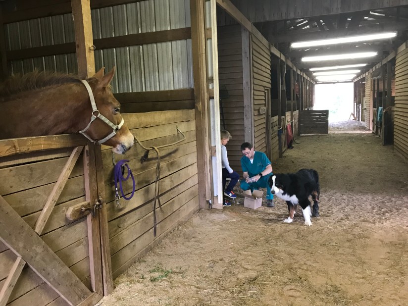 Dusty did spring vaccines on time and without nagging which is a first. H’Appy was very interested in what was going on that didn’t include him. He is extremely nosy.