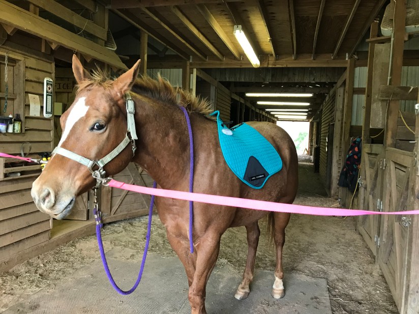 I’m really liking the bright teal on him. This Weatherbetta pad is really nice too. It has a vented spine and the cut fits him nicely. I may have to get more.