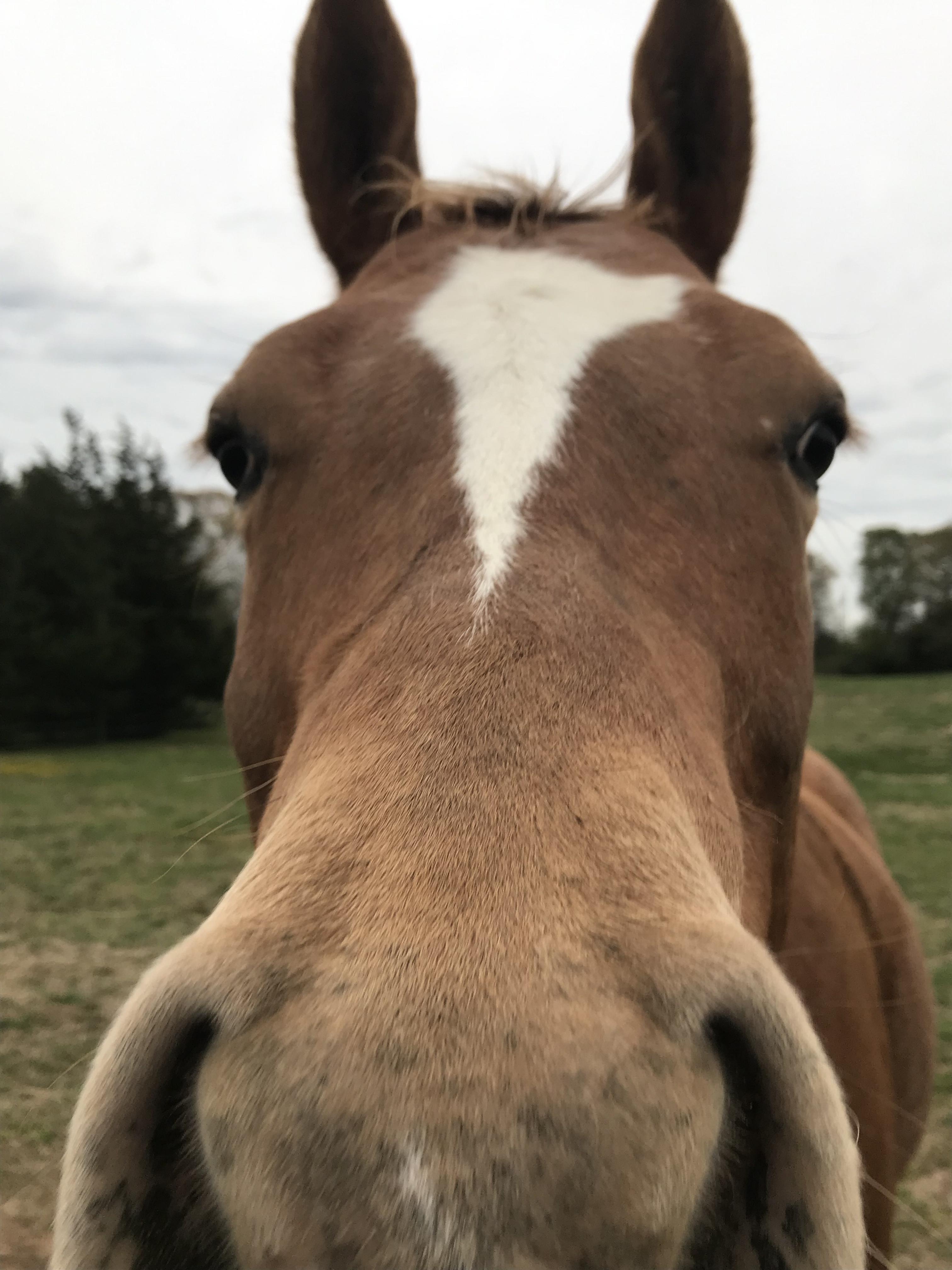 Staring very intently at Dusty in the pasture. He has donkey ears when he has the in full alert