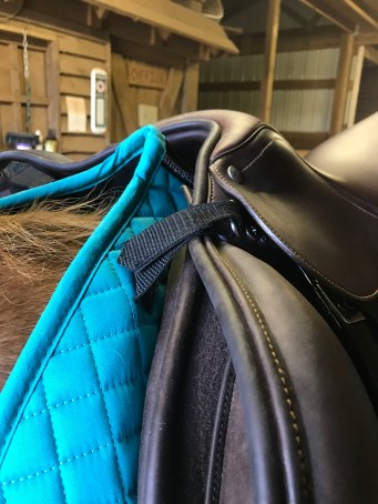 And yes, you are correct, those little straps are for attaching to the saddle D-rings. A couple other brands like LeMieux also use that design and I personally love it. I don’t have a monoflap saddle but the other style of saddle pad straps just always seems to fit awkwardly around the blocks of my saddle so this avoids that issue.