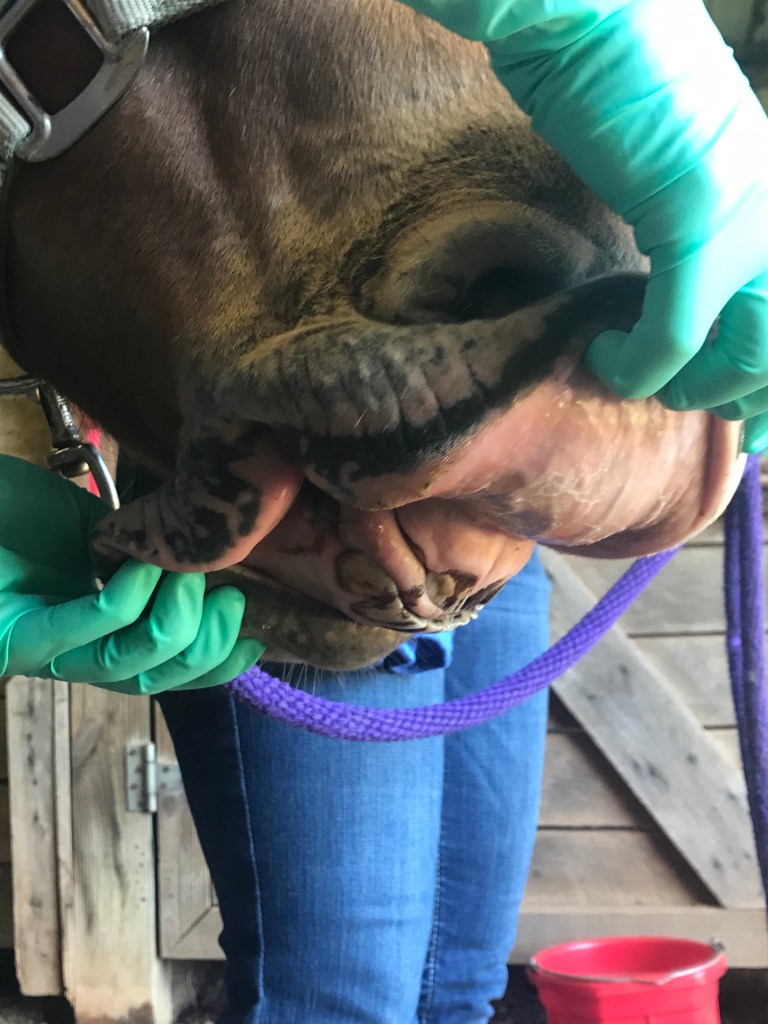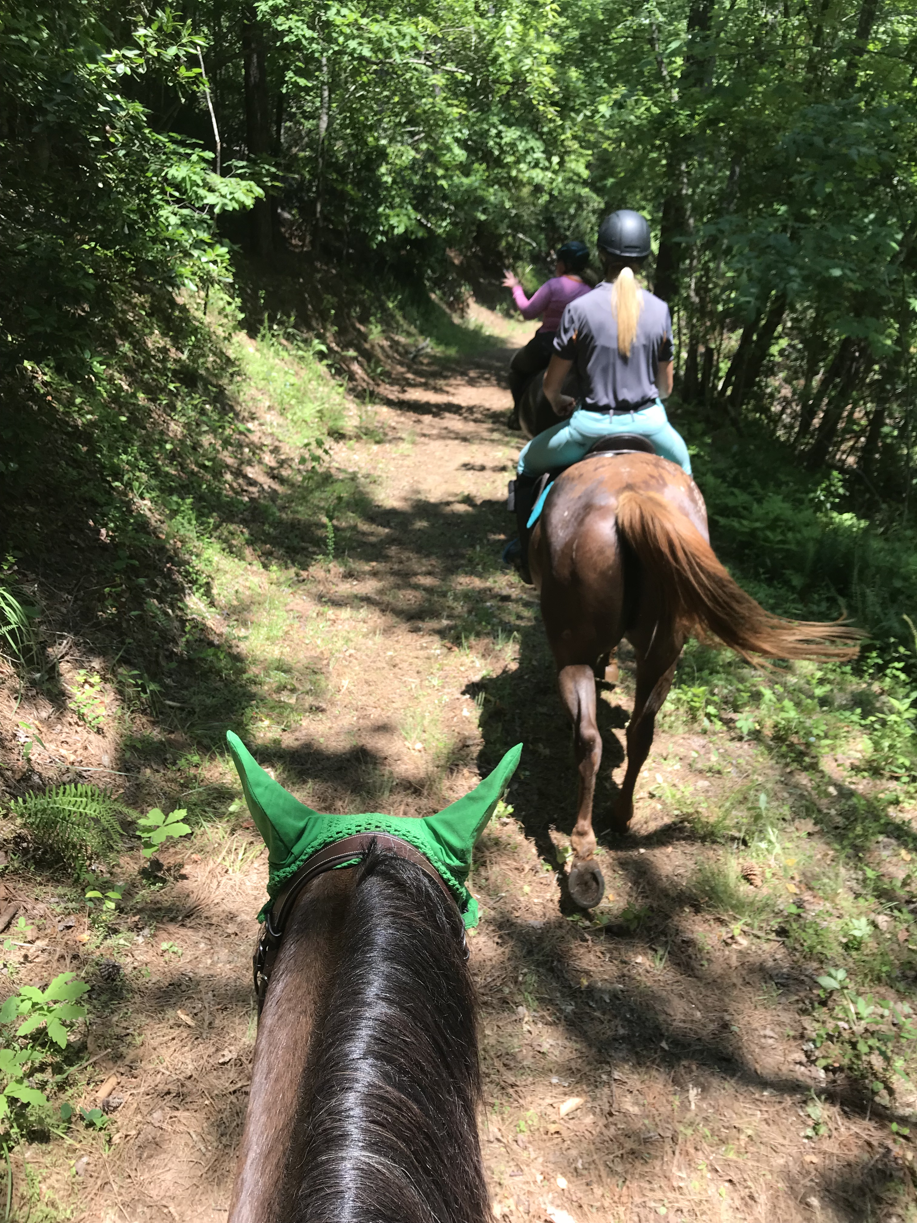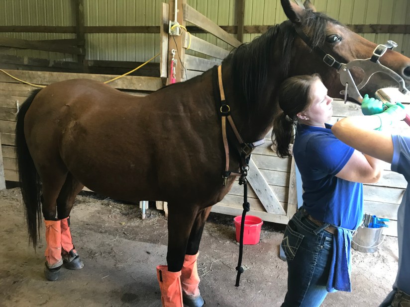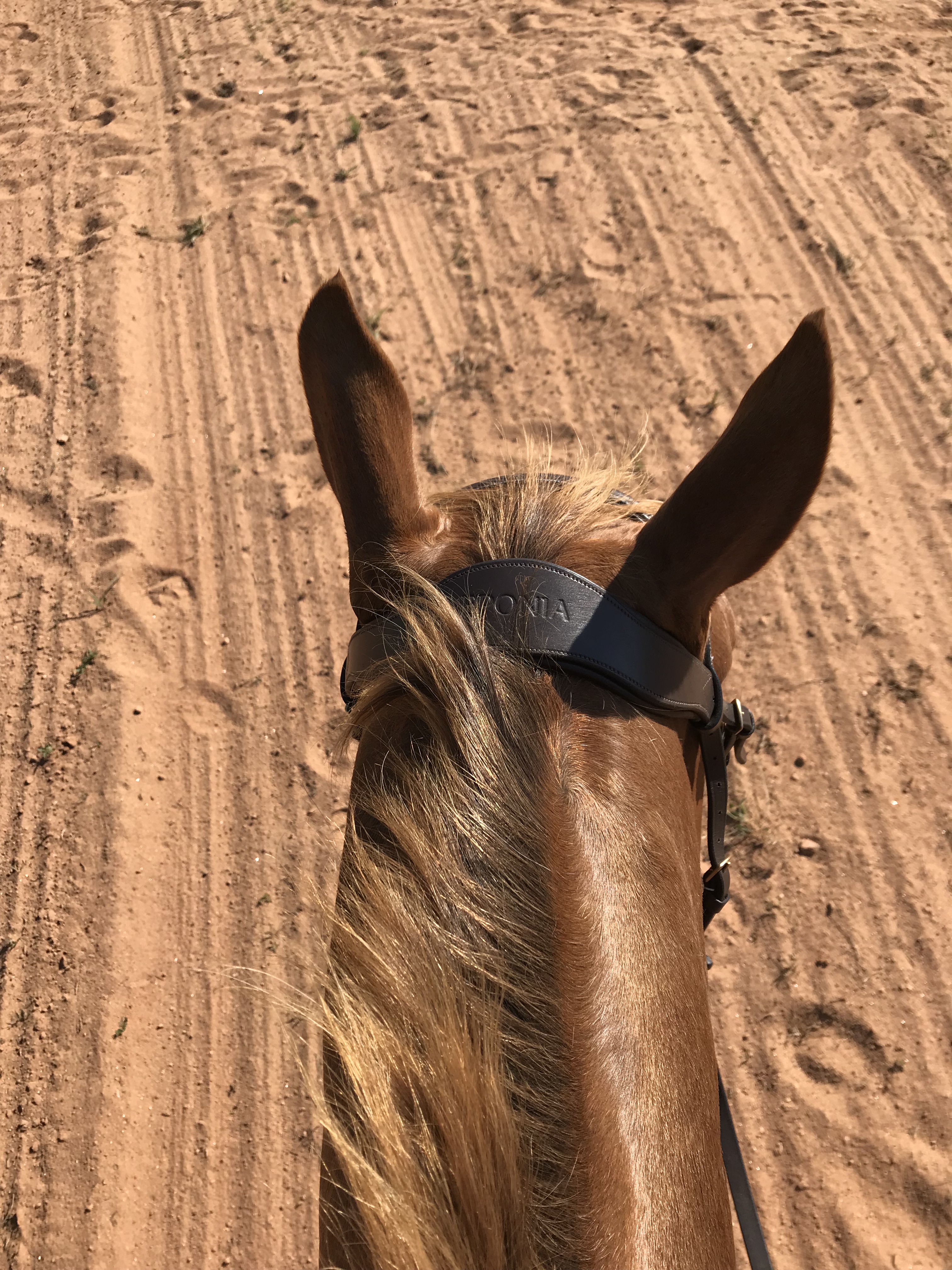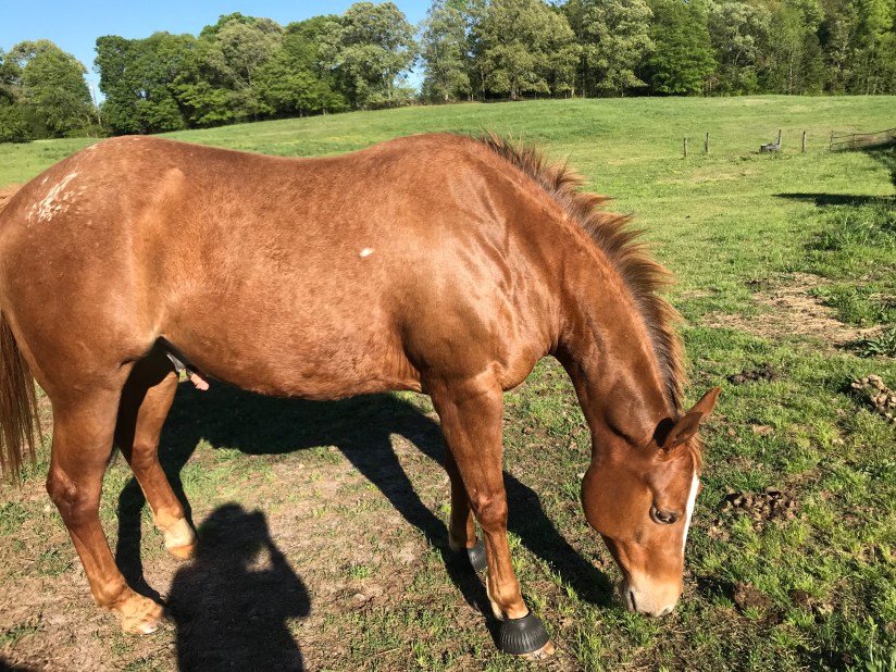 Continuing along in the flat work, Trainer AB wanted me to stop focusing on perfection which ended up being another major breakthrough. When I would ask for a down transition, say from canter to trot, I would immediately get after him for a great trot which is how I was taught in the past. She wasn’t too thrilled with this and said that I need to break it down for him more. He isn’t a baby, but he also isn’t a highly trained professional either so we need to cut him a little slack. When I would ask for the trot, she didn’t care what trot I got as long as it happened when I said. After a few strides, I was then to package him up. So it would look like this: canter-ask for trot-get a flopping limb flailing trot-praise the down transition-3 strides later package him into a good quality trot-ask for walk-get a floppy walk-praise the down transition-3 strides later get a good quality walk-loose rein. I know in the future we will need to get higher quality right away but not where we are at right now. I’m not sure if this had that big of an impact on Eeyore, but it sure took a lot of the stress off me to have that perfection taken off the table. By the time we finished the flat work and moved on to ground poles, he was really relaxed, calm and listening.