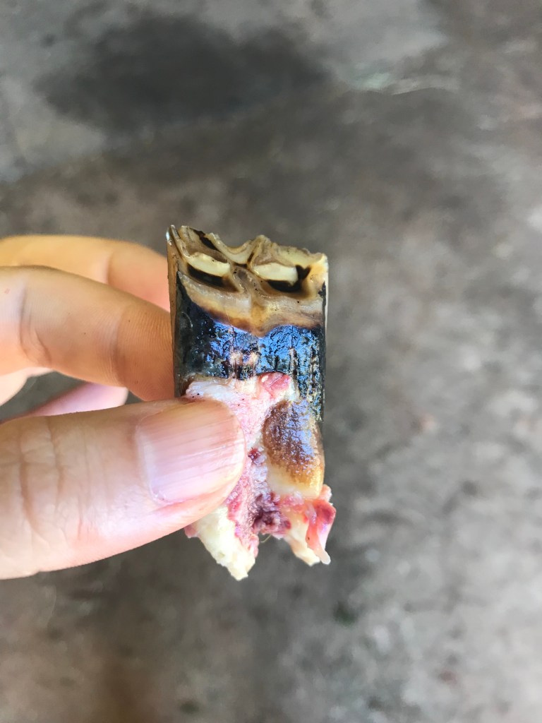 Once he went through that exercise no issues, and I was proud of myself for making all the proper turns, I thought we were done. But no. She asked where I was at in my jumping him. I explained that I like to add jumps as a reward for all the flat work but that I generally trot into them all, canter out when I feel ok, and have only done mostly single fences. She said that jumping a course would be extremely difficult on him since his flat work is so complicated at the moment. We couldn’t just do flat work between the fences since well…sometimes it takes us a while to get him on the same page. She did want to do a cross rail though to end it so she kept 2 ground poles and made a tiny cross rail at the end. We came at it towards the barn since that was his better direction over the poles and she wanted me to bend right after. Well, my brain was still thinking of the last exercise, so we cantered away, bent right, bent left and came at it on the wrong lead since I have zero idea how to get a lead change and he didn’t magically offer one up on his own. She laughed and said to just continue going around to the right to approach from the same direction, so we came around again.