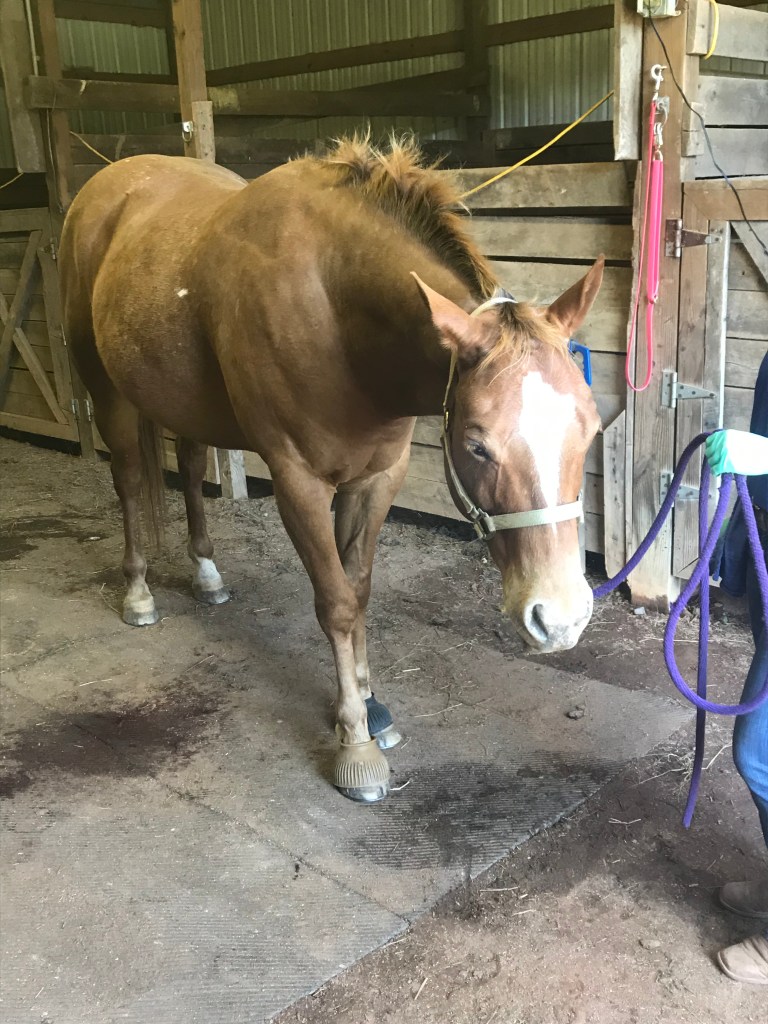 After Trainer AB worked him a solid while in the canter, we had a chat about him. She didn’t hate him, so there was that. Her analysis was that he is used to getting his own way and he does this by being a jerk which then creates a rider who is locked down and tense. Once that happens, he is free to grab the bit and run off to do whatever he decided was more fun be that bulging his shoulder, cutting the corner, or changing gait. When she focused on keeping him on the current path and ignored his back end so that he could canter sideways if that is what he chose as long as he kept on the rail and went where she said, he quickly returned to being a normal horse as it was way more work to canter around sideways than to just comply and go where she wanted. I had the opportunity to work on this a lot and it was much easier to do than I thought it would be.