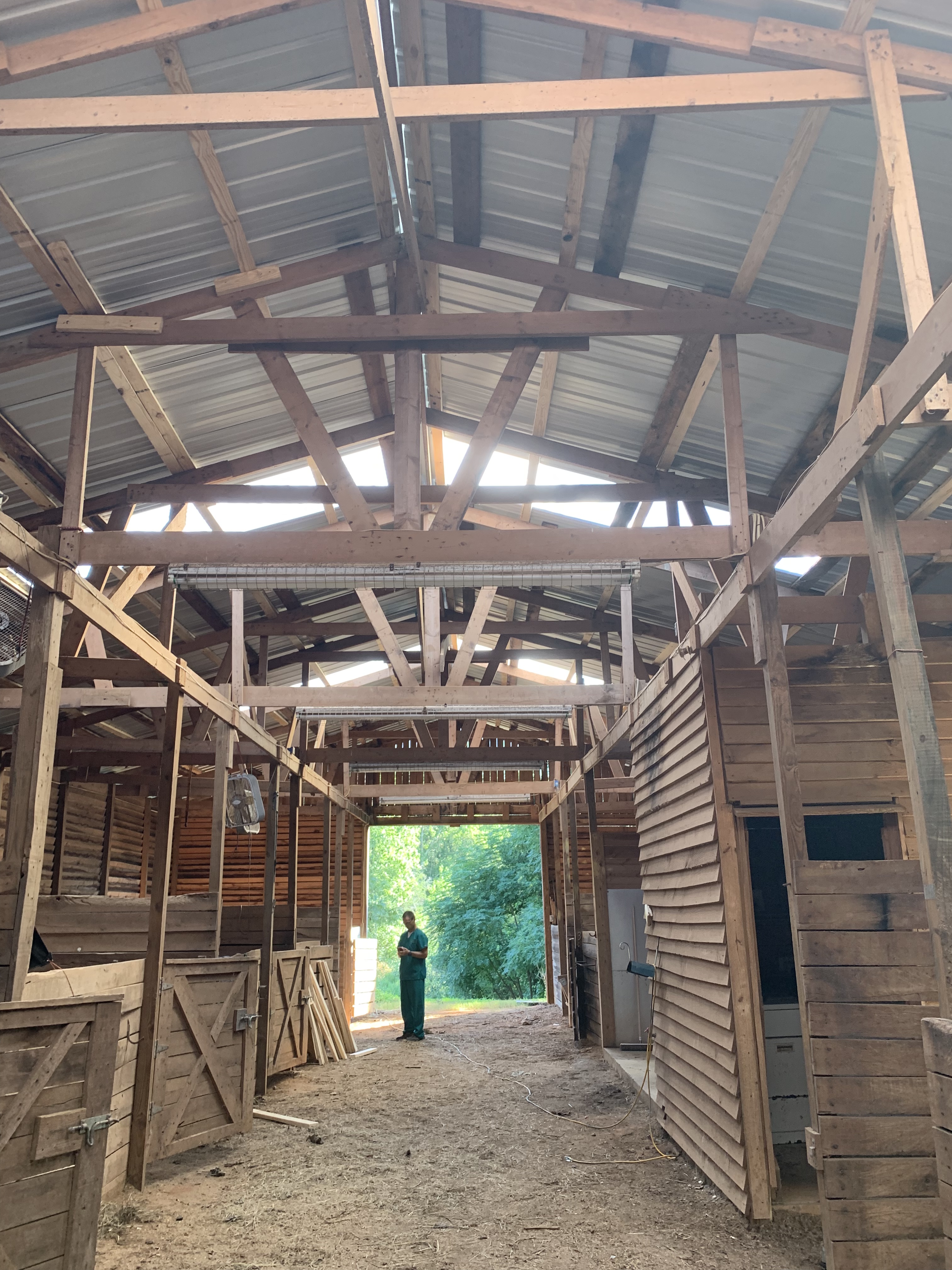 The sub contractor pointed out the new side that was done that day (without permission I remind you) and asked if I was happy with the quality on work over there. He had fired the original crew of two men and had a new crew of six on the job. I took my time inspecting it. I went into every stall looking at it from all angles. Thankfully there wasn’t a hole in sight and the wood work was of professional quality as far as I could tell.
