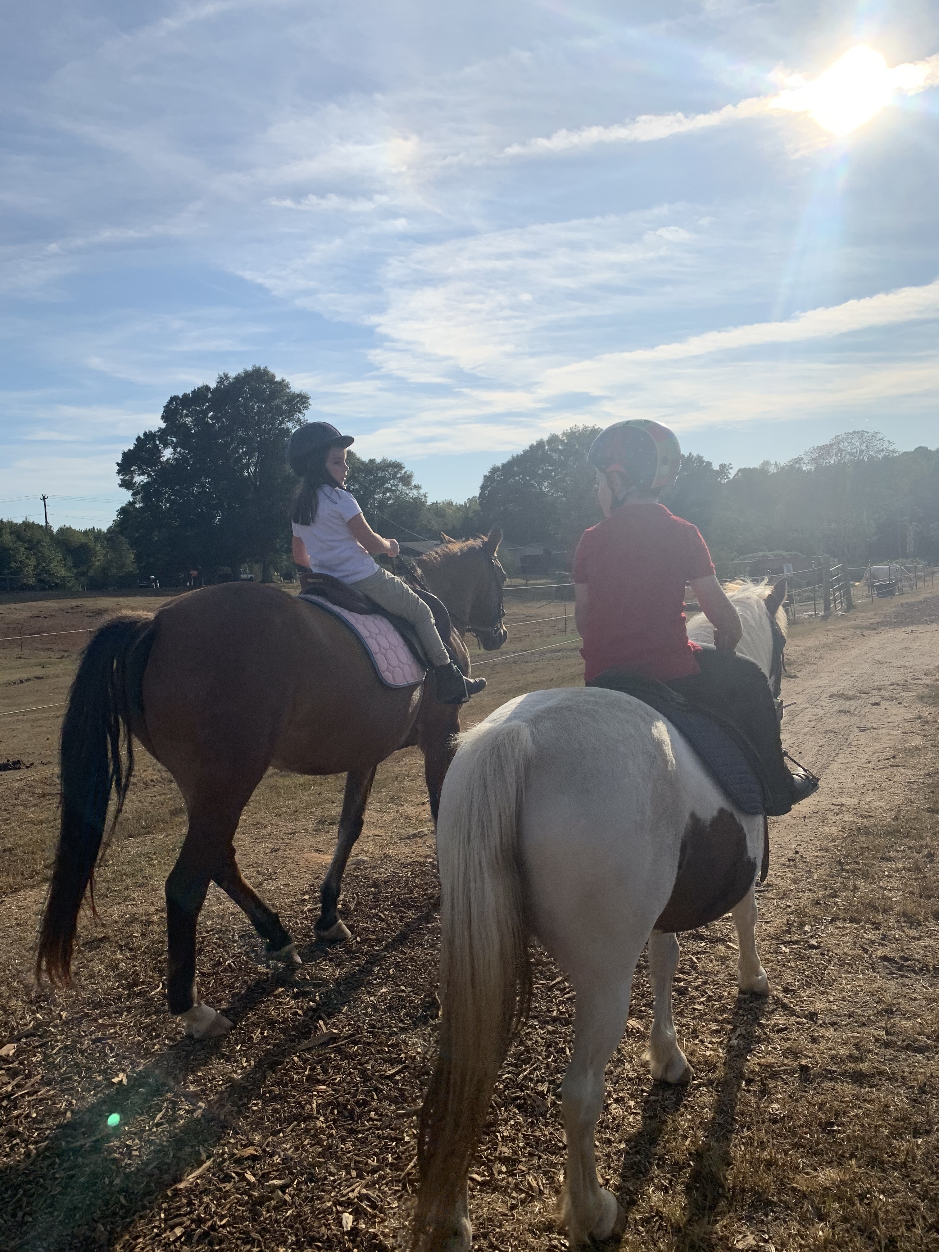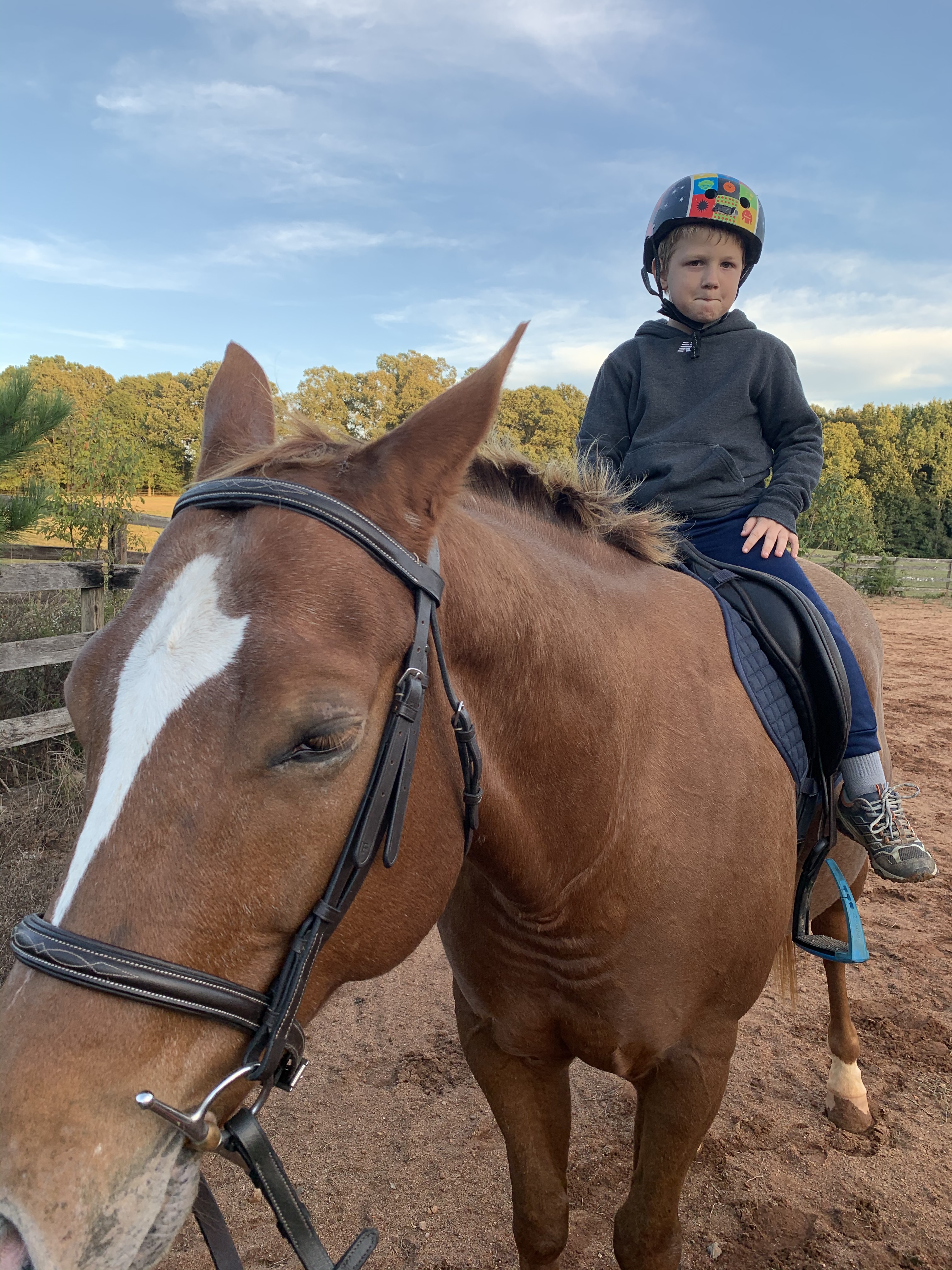 Wyatt had a fantastic lesson last week and ended it by riding off on a trail ride with the other girl in the lesson. Without me. On his own.
