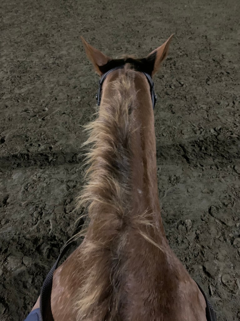 He bucked and reared and farted and had a good time getting his wiggles out to the left and then I asked him to go right and he tried to nope his way right out of that. I got him to go but he was sulky, barely picked up the canter and only kept going because I forced him to. I didn’t think much of it. He had had his fun going left after all.