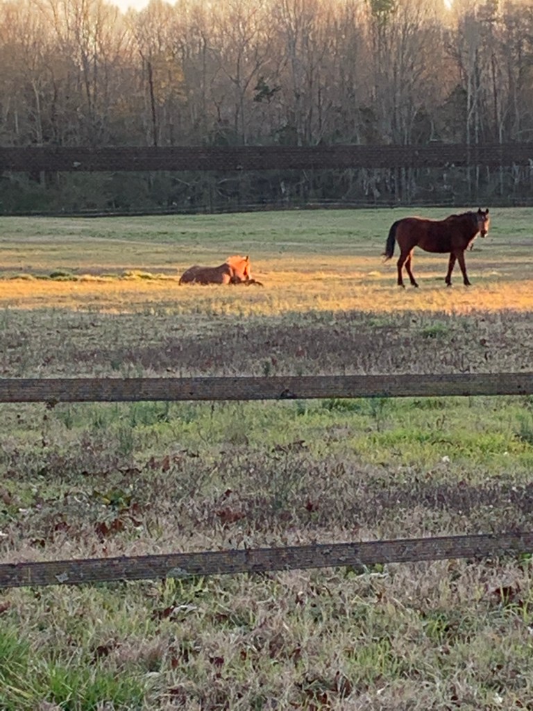 My first thought was “hahahahah look how tired he is!”. We called the horses in for dinner and he cantered to the gate so I didn’t think much else about it.