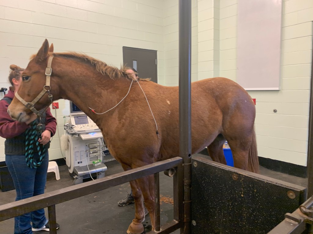 Eeyore had been the perfect patient to this point. She had complimented him several times and like all prior vets who have seen him said “he is a really cool horse. I like him a lot”. He doesn’t like his girth area touched though. Doesn’t like it scratched. Doesn’t like it groomed. Tolerates the girth as long as it is memory foam. When she jammed the ultrasound wand into his girth to see his heart, he freaked out a little. Nothing terrible, but his heart rate soared and he became fidgety. Two things that impede the process of the echo.