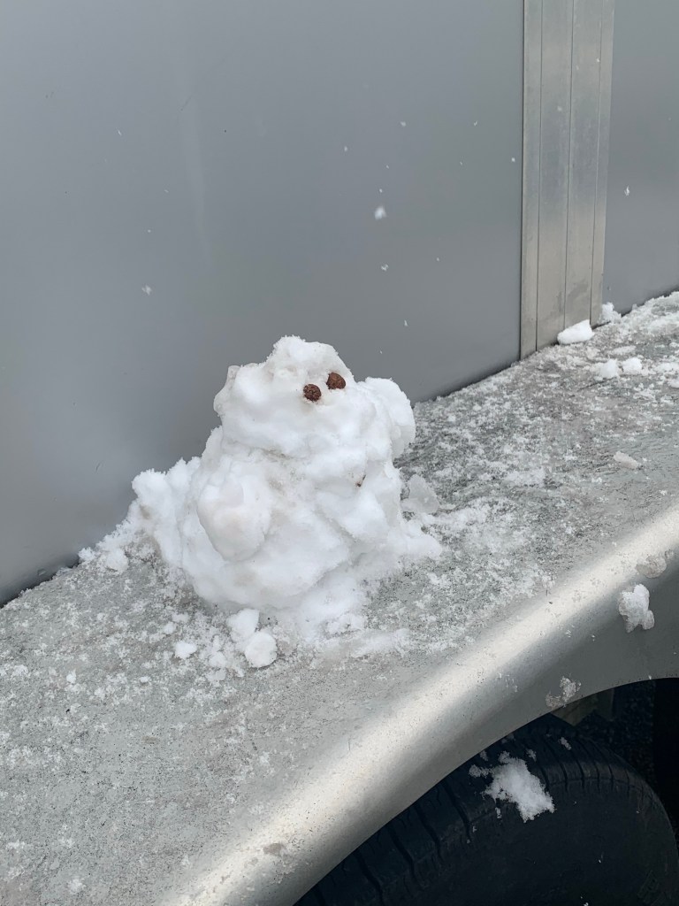 Wyatt made a snow dinosaur complete with cocoa puff eyes