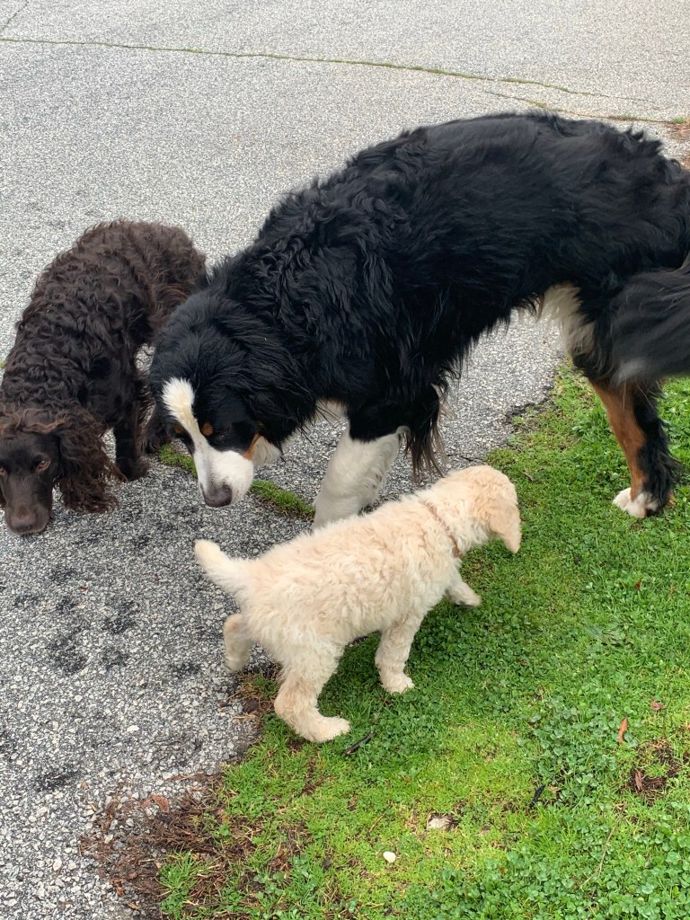 So far his is proving to be quite the little pup. He is brave and bold, friendly and inquisitive. He loves being outside more than in, has gotten along well with our other two and the cats haven’t hissed yet though give them time. He isn’t wild and crazy though and loves a good cuddle. He hasn’t had an accident inside yet, though we are pretty insane about the going outside schedule and take him out every 15 minutes while awake and every 4 hours overnight.