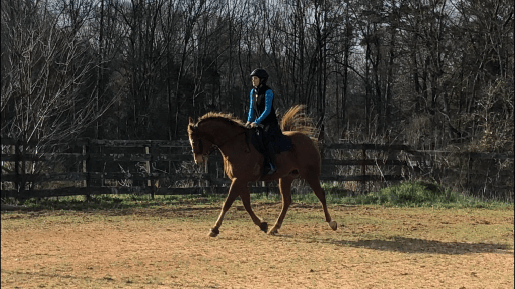 I quickly hopped on Eeyore to make sure he wasn’t going to be too extra then handed the reins off to Emma to try him out. It’s always interesting for me to hear other people’s take on him. With anyone new he pulls out his favorite evasion to work which is just to canter everywhere and the ride becomes a jumble of gaits and mishmash of pace and loss of rhythm but she handled it well and soon he knocked it off and got down to business.
