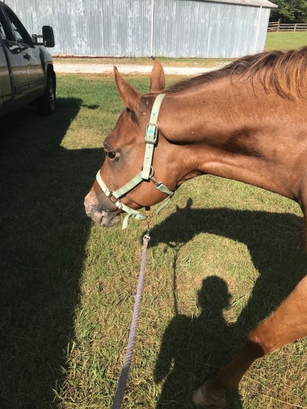 Fortunately for both our sakes, Cruze isn’t very committed to being naughty and a few times making him halt, back, halt and then walk on got him back to listening. He still squealed under his breath and was tense but he walked without theatrics and loaded up just fine.