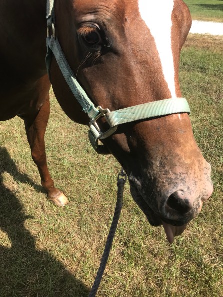 After 25 minutes he was dripping with sweat and huffing pretty good. Six weeks off didn’t do his fitness any favors, so it was time to end it even though I found myself back to where we began with me never wanting to get off him. Riding him, when he is like this, is just plain FUN. Sure, we aren’t perfect and aren’t working on anything more difficult than w/t/c and cross rails, but it is FUN. Capitol FUN. Never want the ride to end FUN. It reminded me exactly why I chose this particular horse of all the ones I tried and all the others on my list to try. He isn’t fancy and we likely won’t be winning anything, but damn is he just what I need.
