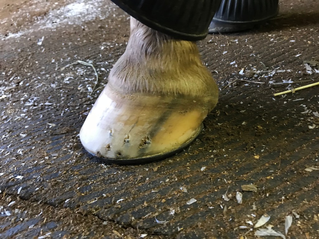 Hoof growth is super interesting to me and while I tend to lean towards barefoot for healthier circulation and overall function, sometimes that just isn’t possible with the horse you have. H’Appy proved that to me last summer. Maybe with his stronger hoof wall and thicker soles he can withstand barefoot in the future but other than hating the damage shoes do to my pasture, I’m not anti shoe either. I’m pretty much pro whatever makes my horse happy and pain free and at the moment that is shoes sans pads.