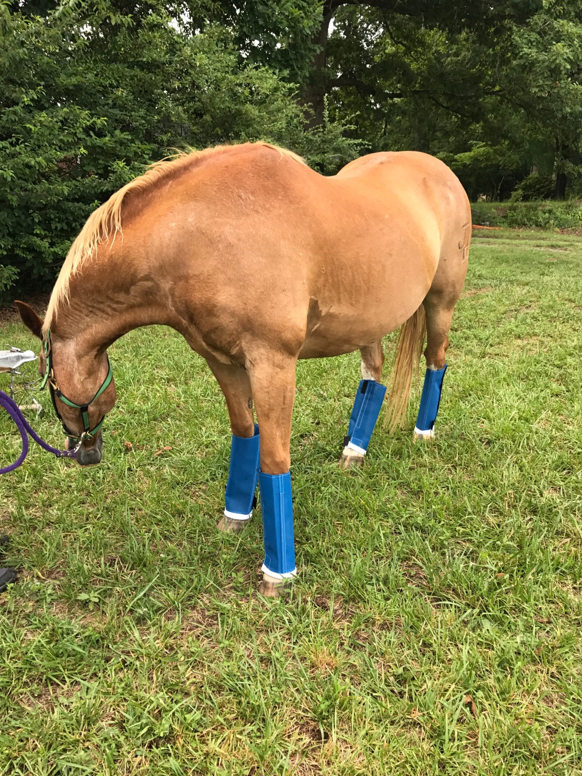 I found mine at Jeffers for $49 a set which includes four leggings. I ordered a medium for Gem (15h, 950lbs) and a large for Pete (16h, 1200 lbs). The website gives recommendations based on horse size and also provides a size chart with exact measurements for those more motivated than I am.