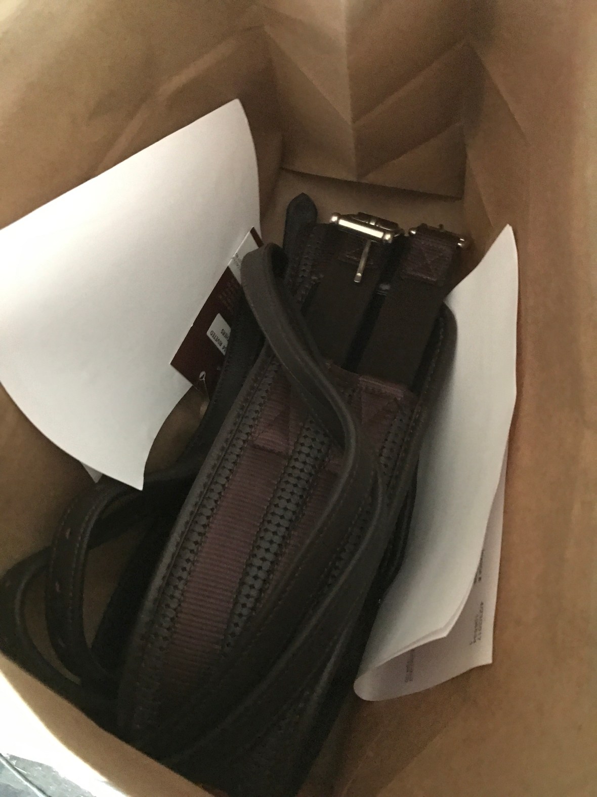 Armed with all the knowledge I went to the tack store. I wanted a 50″ based on what I measured, but they lady talked me into a 44″ based on the adage of adding 20″ to the dressage. The dressage has super long billets and the jump average short ones, but she owns the shop so I believed her.