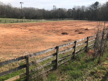 I started the renovation back in March. It is now May. I won’t have it done to the point that I want it at until June. And even then I have the feeling that we will be fighting this for years until I can afford to just rip the entire thing out and have someone come in and redo it all. The biggest issue is that I don’t think it was put in correctly in the first place. There is no true “base” with drainage and gravel. The good thing is that the arena dries up very quickly and doesn’t really puddle anywhere. Even after a hard storm it is dry and rideable within a day. But the lack of a true base allows vegetation to grow pretty quickly.