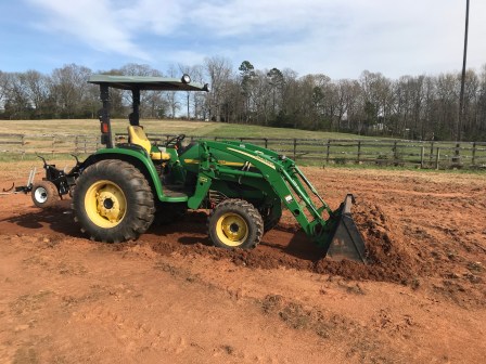 I muttered many choice words about the old owner not dragging the damn thing in six years and went about spending three hours putting round up on the grass. Two days later I went back in with the groomer to rip up the dead grass and move footing around.