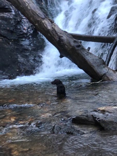 We let Einstein off at the falls figuring he would hang out around us there no problem and he enjoyed the time to swim and play with Waggy. He is a natural born swimmer and can’t stay out of the water.