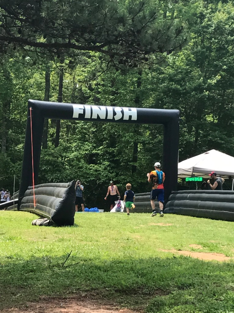 Dusty ran a hot and hilly marathon Saturday. I signed him up as a surprise two weeks prior. He was excited even though he had no time to prepare, but his training runs are in the upper teens to low 20s anyway. It ended up being 87F and 1900′ of elevation. He still finished 3rd in his age group and 16th of 48 overall. Wyatt raced him to the finish and bragged all weekend about beating him.Turn down center line at A, halt at x and salute: I got Gem into the corner better but still failed to let her know we were making a sharp turn. She didn’t trip so that was a plus. The halt was much better but then I thought she was done moving and saluted and she moved. Use that corner, sit up tall and prepare her sooner. Wait until she is 100% still before saluting.