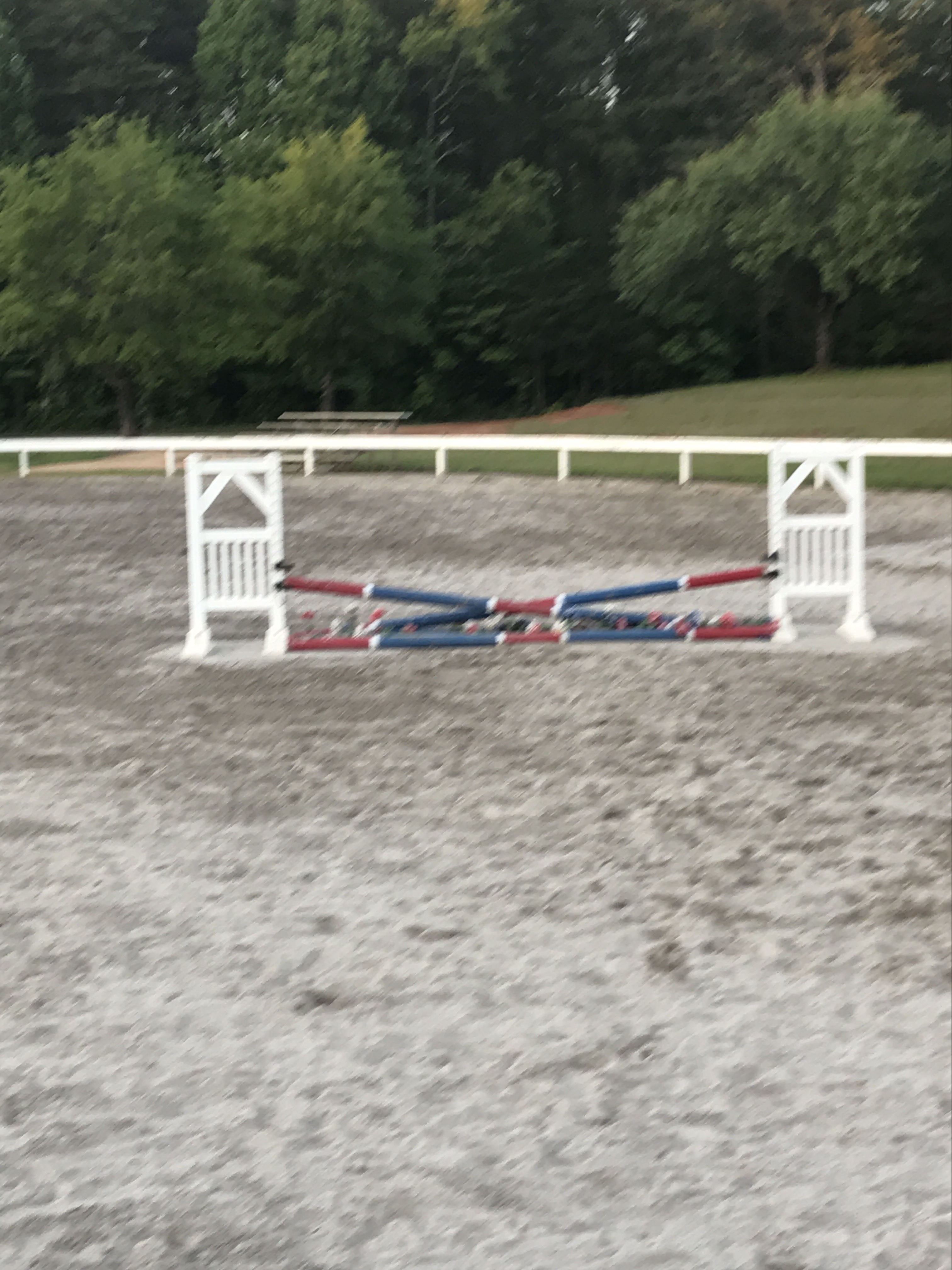 Trainer had me circle around and do the one stride again. This time I set us up better and we went through no issues. Trainer remarked that she could throw up a 3ft fence and Gem would have soared over it. Mare was launching herself. I was sad I got no pictures.