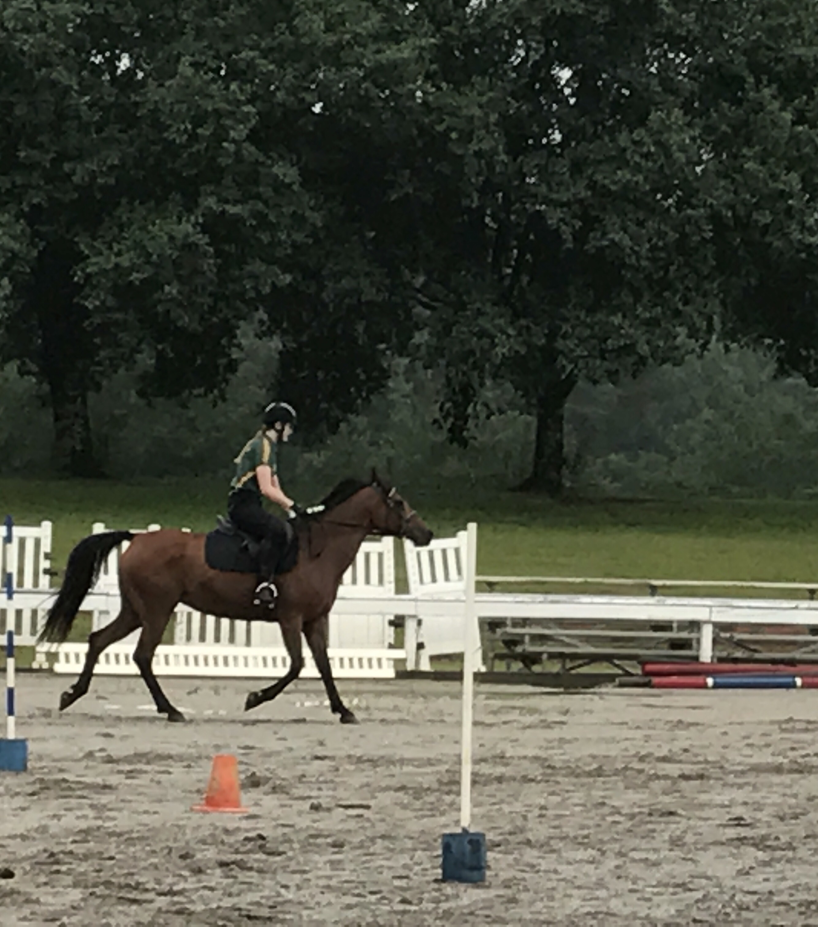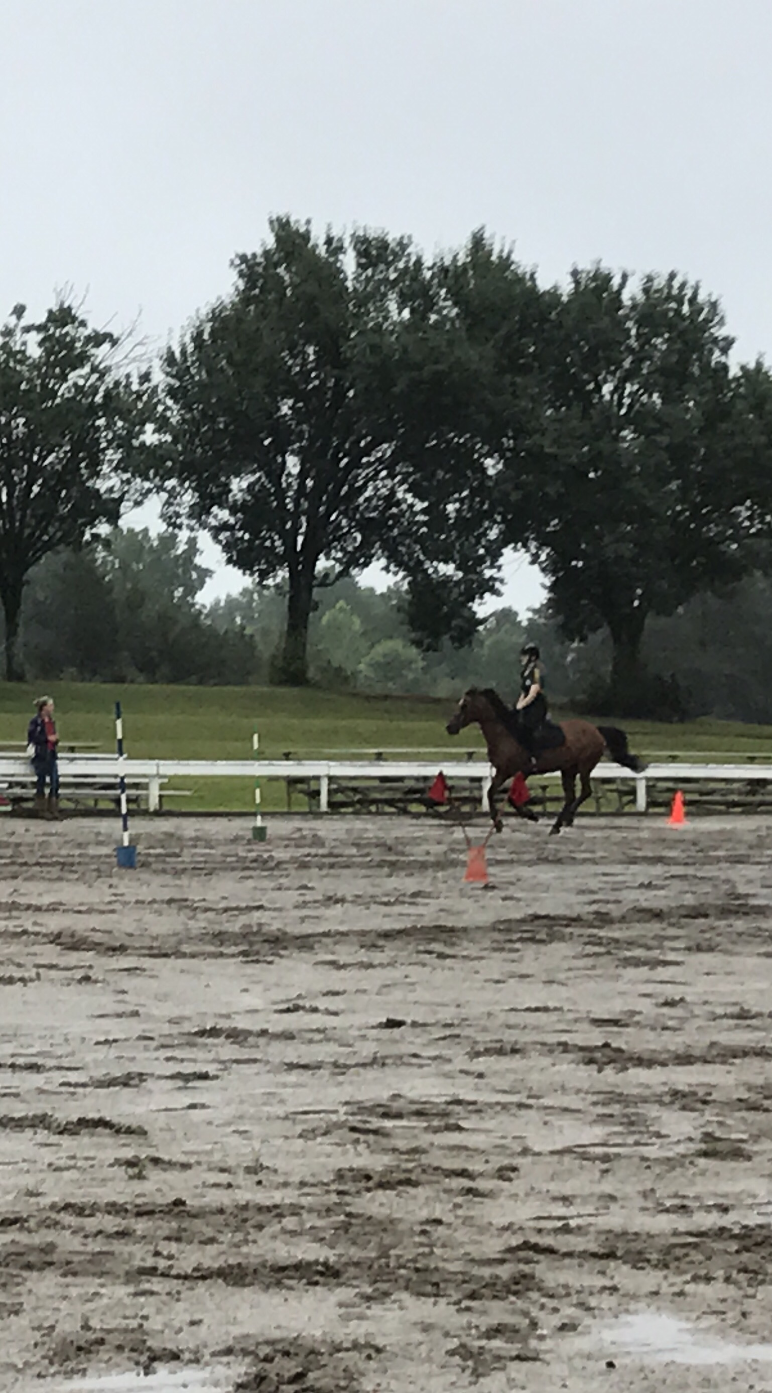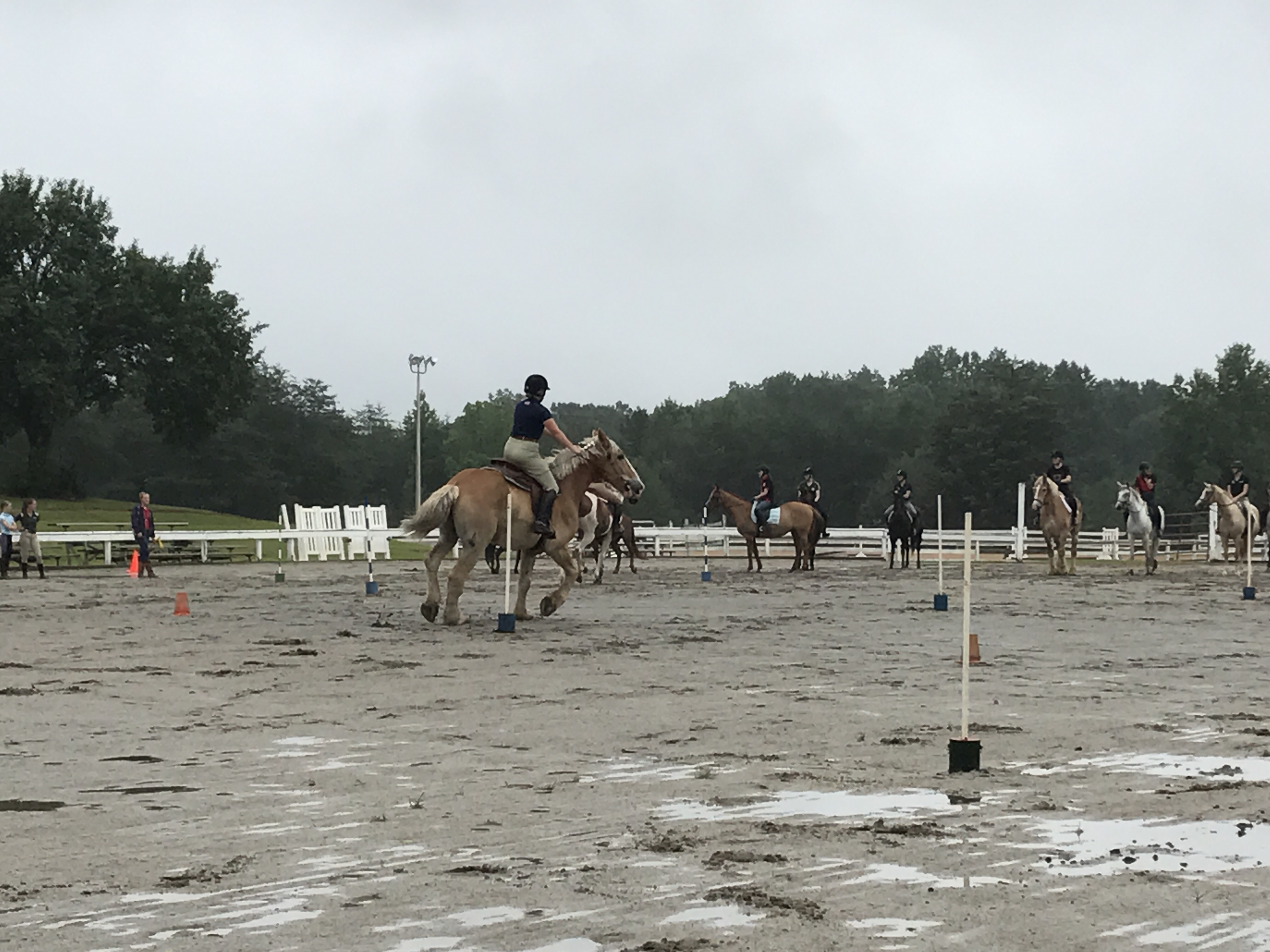 After that it was time to untack and eat lunch. My rider gave me a special pin from her home Pony Club as a thank you. She told me that she had never ridden a horse who could trot so fast. In the games she would ask for more speed and Gem would just up her trotting. She did get her to canter a lot too, but she said her trot was so fast she didn’t need to canter. On trail, she could tell Gem wanted to trot and not walk so she let her. She apparently even took her over a down bank and a small roll top! She said Gem was hesitant but once she put her leg on and told her she really did want her to go, she popped over no issue. Sounds about right.
