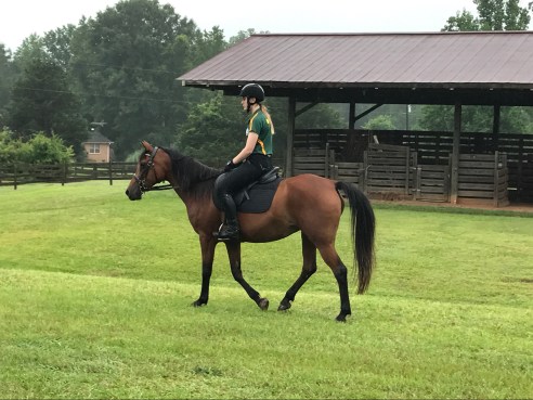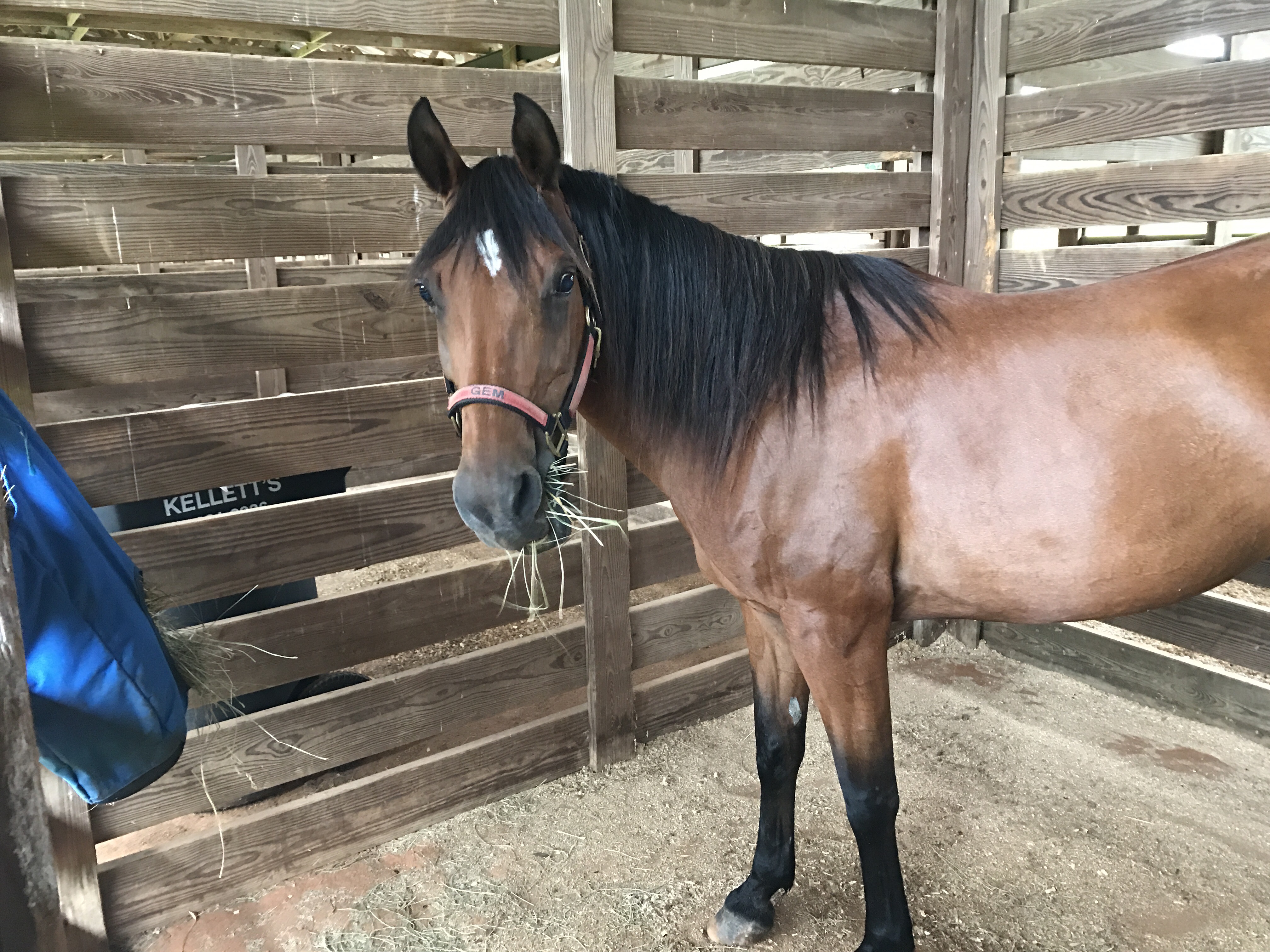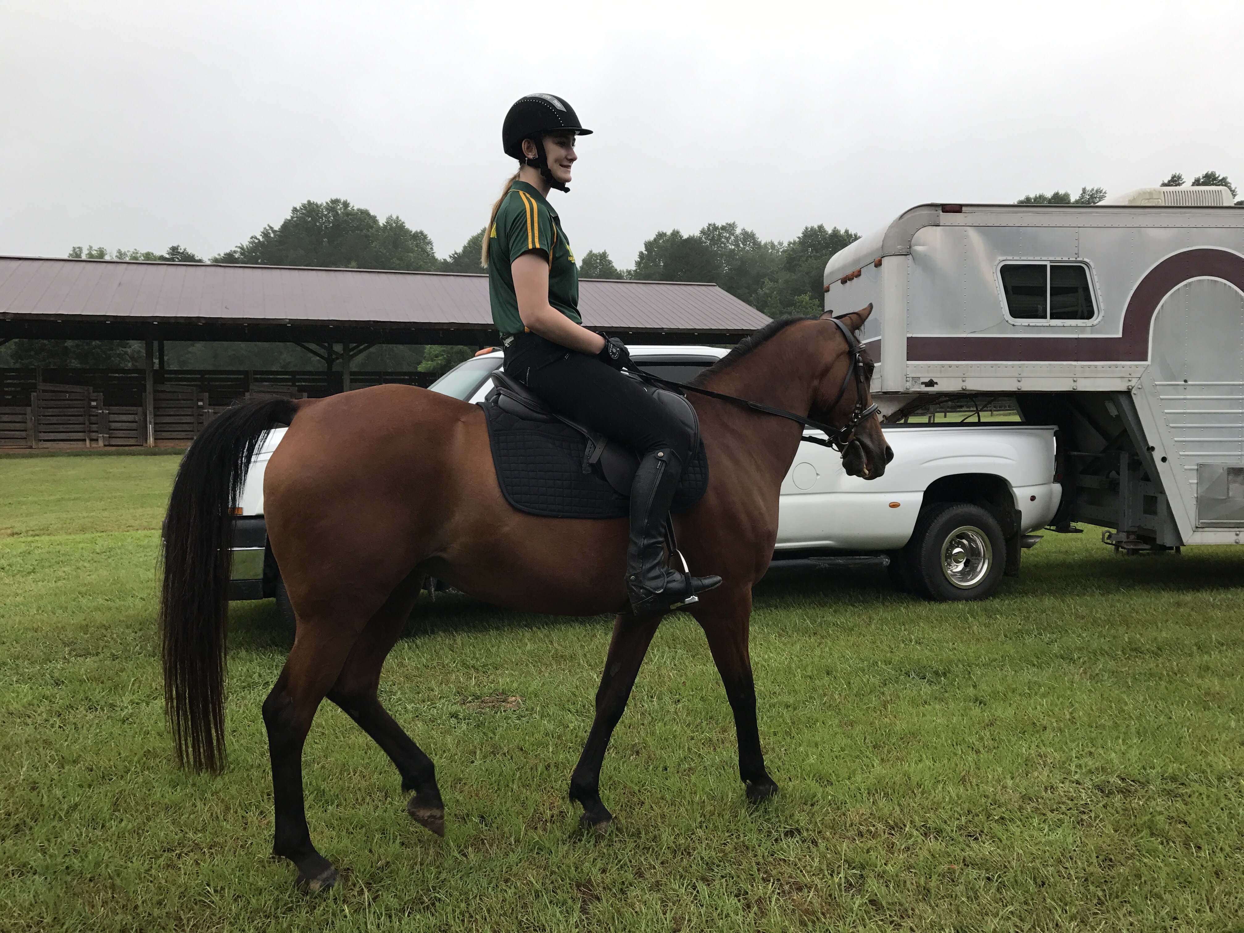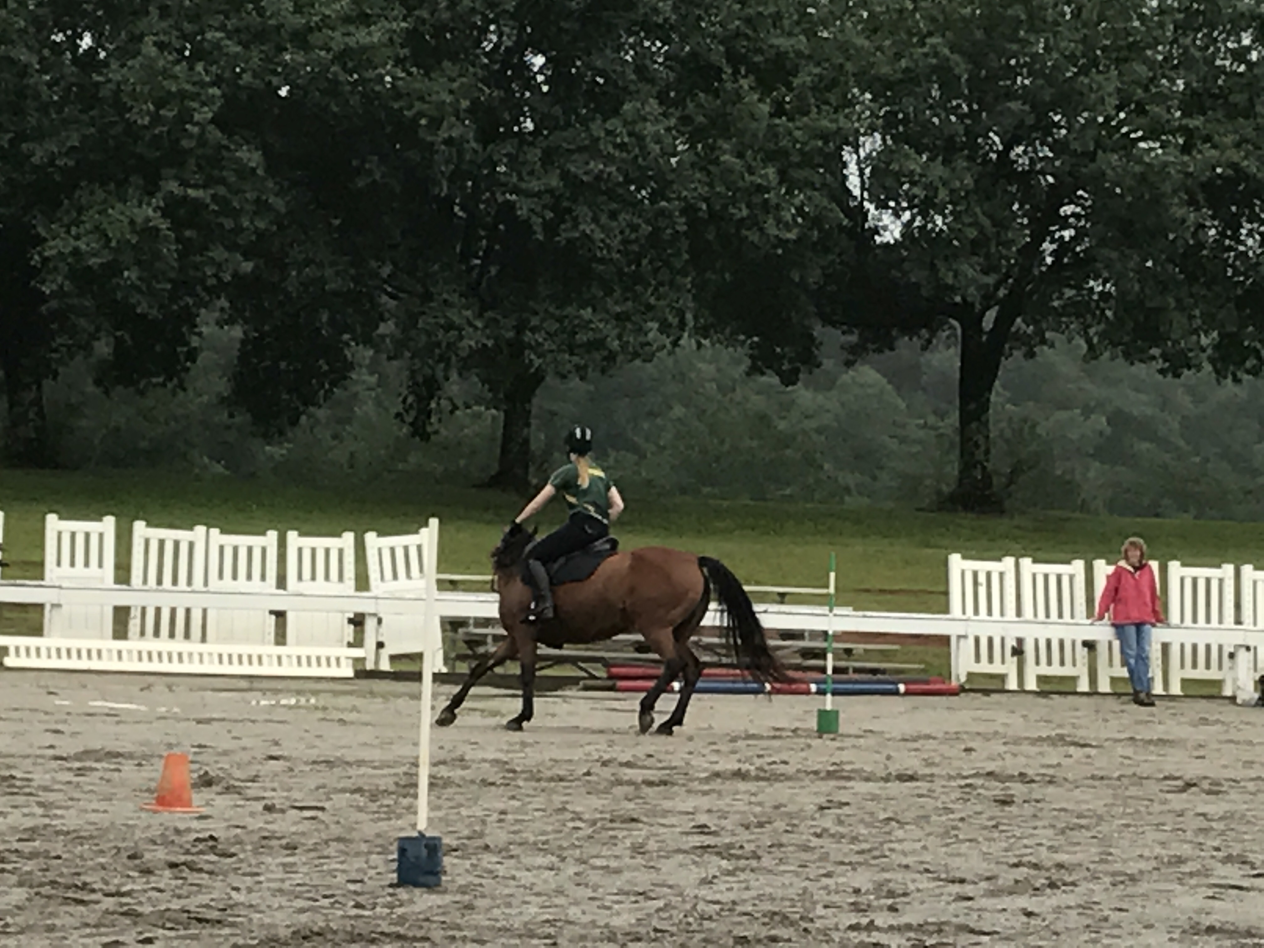 After that it was time to untack and eat lunch. My rider gave me a special pin from her home Pony Club as a thank you. She told me that she had never ridden a horse who could trot so fast. In the games she would ask for more speed and Gem would just up her trotting. She did get her to canter a lot too, but she said her trot was so fast she didn’t need to canter. On trail, she could tell Gem wanted to trot and not walk so she let her. She apparently even took her over a down bank and a small roll top! She said Gem was hesitant but once she put her leg on and told her she really did want her to go, she popped over no issue. Sounds about right.